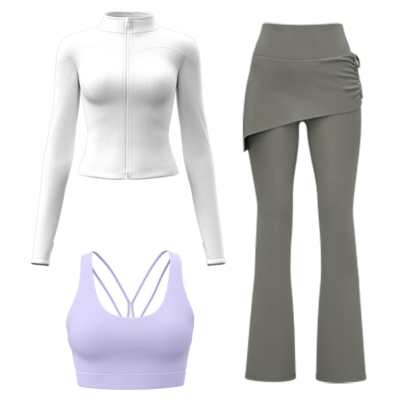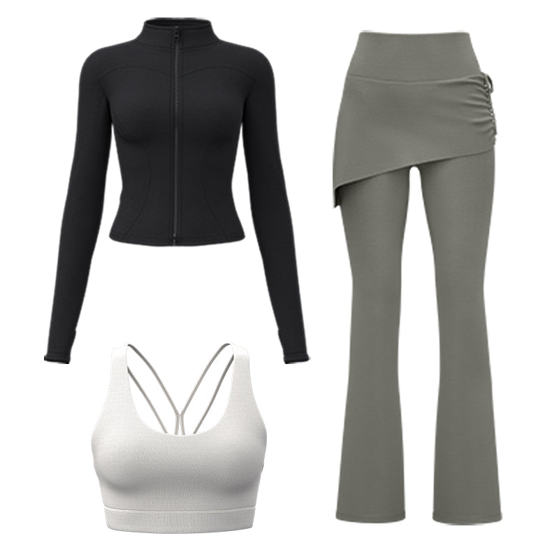 Ushbu uch qismli, yuqori cho'ziluvchan, qo'llab-quvvatlovchi poliester/spandeks to'plami yugurish, yoga va fitnes uchun qulaylik, tez quriydigan va haykaltaroshlik effektini ta'minlaydi.