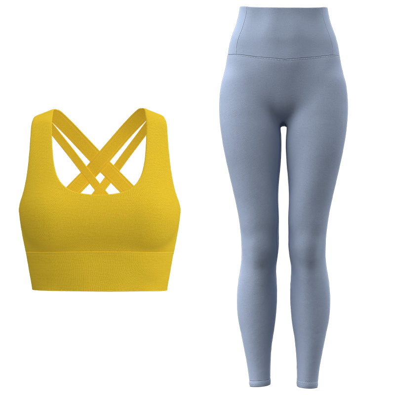 Ikki qismli to'plam, mahkamlangan stakanlar, yuqori elastiklik, orqa tayanch va yoga, fitnes va mashg'ulotlar paytida qulaylik, nafas olish va zarbaga qarshi ta'sirni ta'minlaydi.