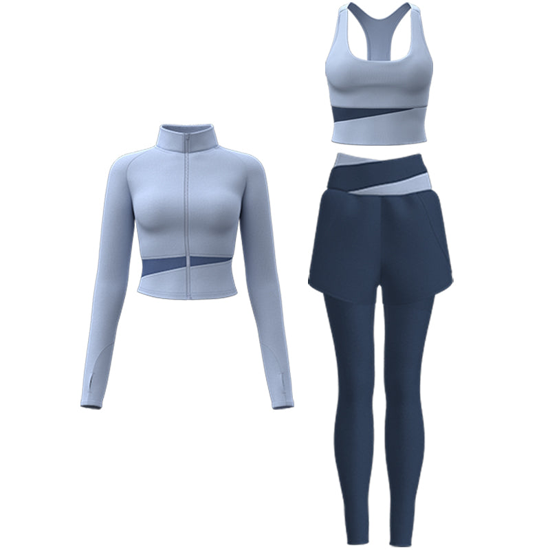 Ushbu uch qismli to'plam yuqori elastiklik va belni qo'llab-quvvatlash xususiyatiga ega bo'lib, poliester va spandeksdan tayyorlangan bo'lib, yoga, yugurish va fitnes paytida qulaylik, tez qurish va haykaltaroshlik effektini ta'minlaydi.
