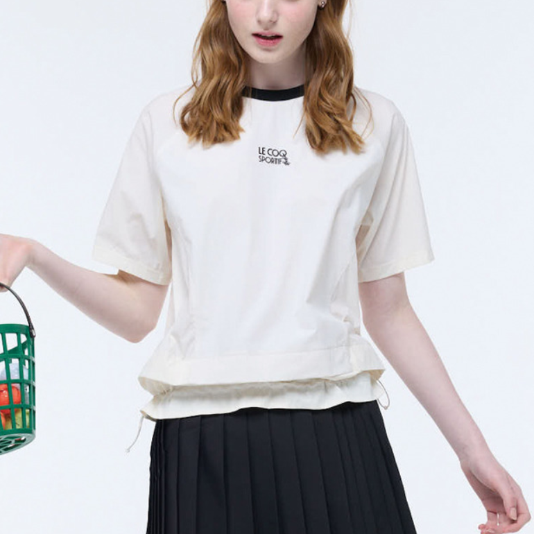 Le Coq Sportif ayollar uchun bosilgan ekipaj bo'yinli qisqa yengli futbolka