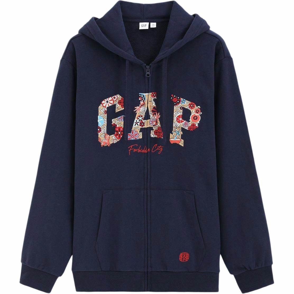Gap x Forbidden City logotipi tikilgan fermuarli qalpoqli kozok. Erkaklar uchun mo'ljallangan bahor uchun qulay va zamonaviy model.