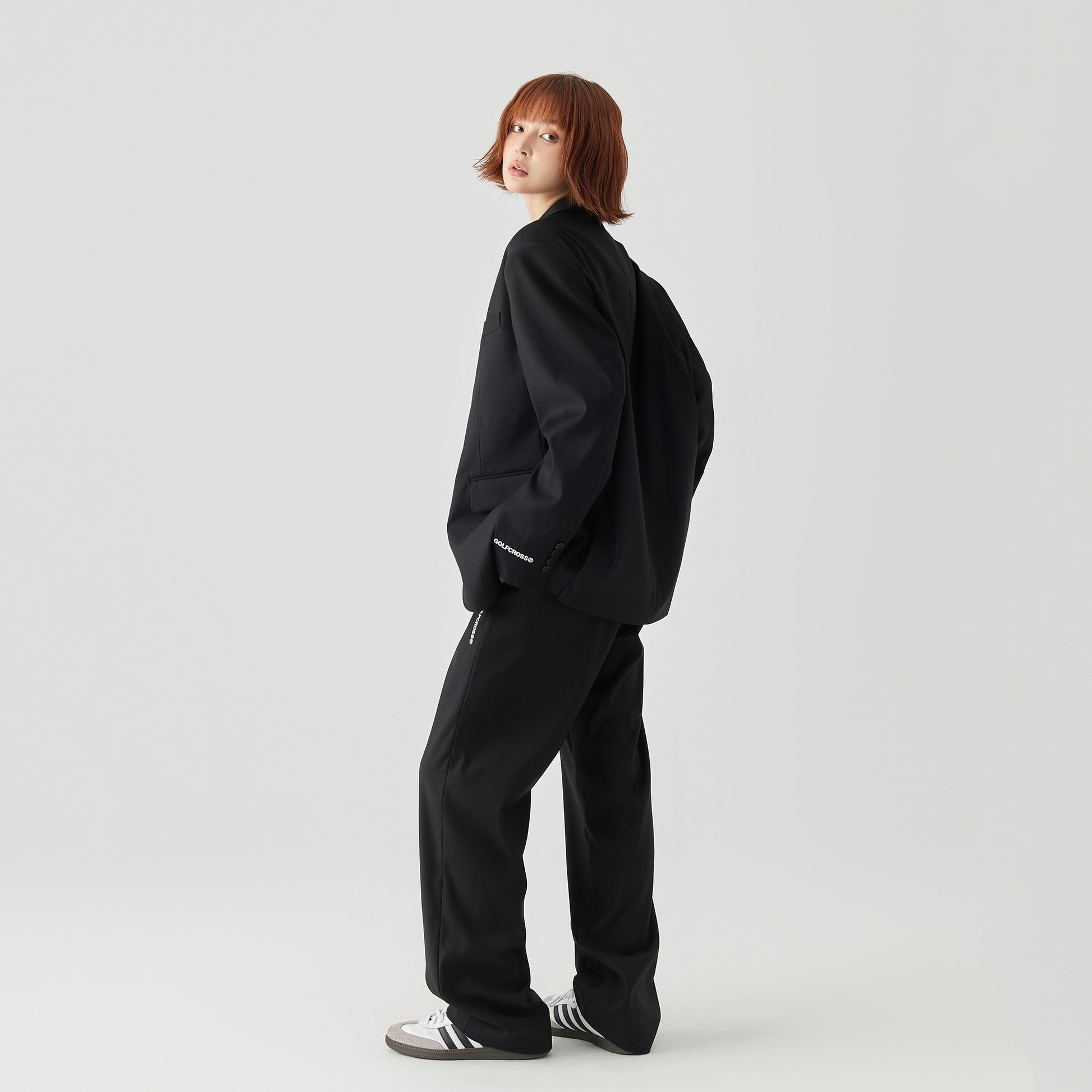 Golfcross sof rangli klassik harfli bosma asosiy oddiy bo'sh tasodifiy draped kostyum kostyum uniseks qora