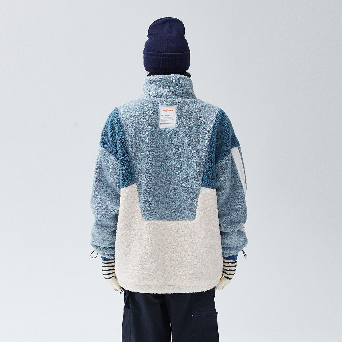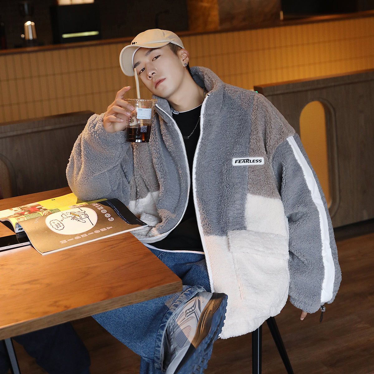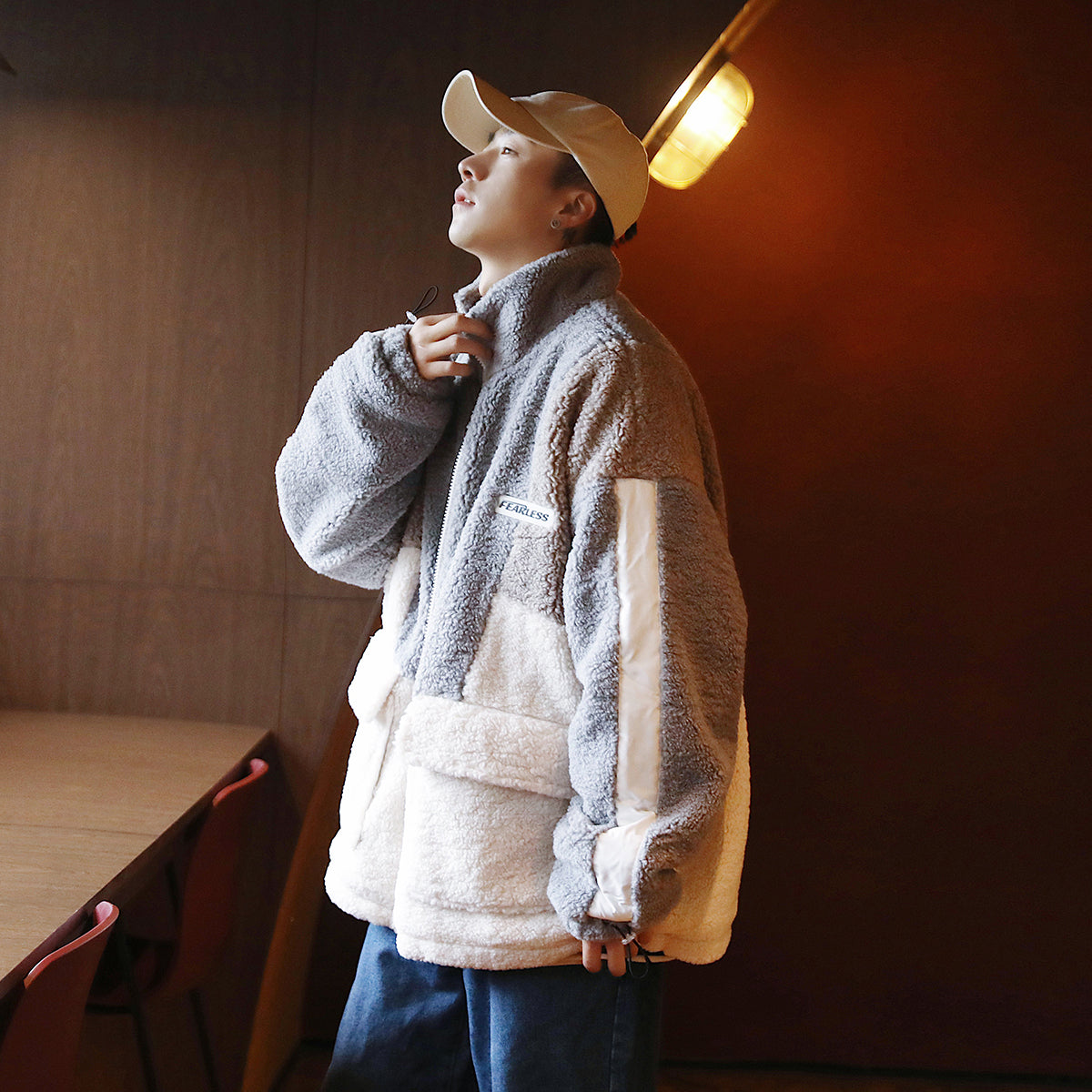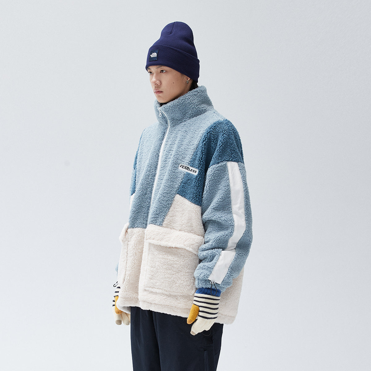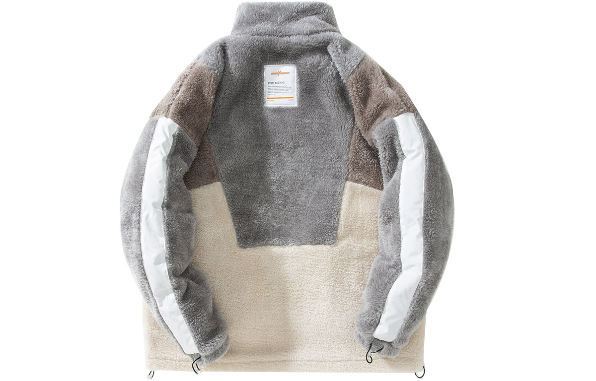 Golfkross ish kiyimi cho'ntaklari bir-biriga bog'langan to'qnashuv rangli qo'zichoq juni harflari yorlig'i qalinlashgan yoqa bo'sh paxta ko'ylagi bir xil narsali erkaklar va ayollar