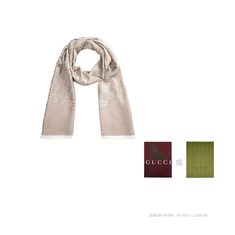 Double G logotipi bilan bezatilgan, toʻqilgan va gulli naqshli qaytariladigan baxmal sharf. Yengil xaki rangida ishlangan va to'qmoqlar bilan to'ldirilgan ushbu zamonaviy aksessuar erkaklar va ayollar uchun mos keladi. U har qanday kiyimga murakkab ta'sir ko'rsatadi va sovuq oylarda qulay his-tuyg'ularni yaratishga yordam beradi.