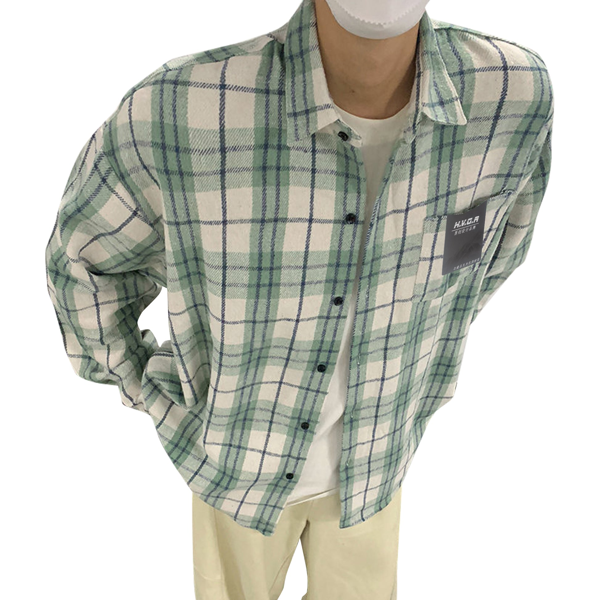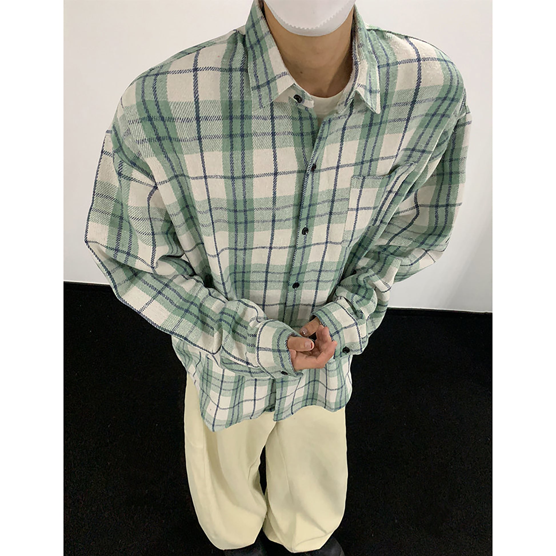Hvga vintage plaid miu bo'limi yuqori intellektual ma'noda dangasa bo'shashmasdan uzun yengli plaid hit rangli dizayn ma'nosi shaxsiyat ijodiy moda aseksual katta ma'noda vintage oddiy qulay lapel ko'ylak erkaklar va ayollar teng