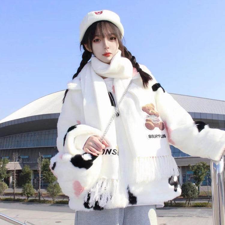 Kashta tikilgan ayiqli qalin jundan yasalgan issiq va qulay sharf. Sovuq havoda qulaylik va issiqlikni ta'minlovchi, erkaklar va ayollar uchun ideal bo'lgan zamonaviy aksessuar.