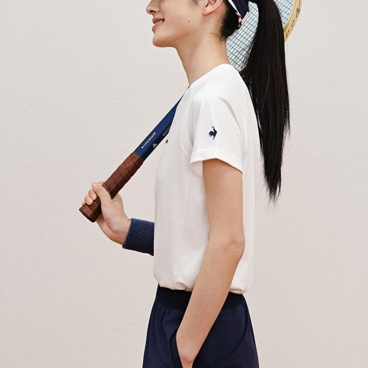 Le coq le coq sportif ochiq havoda kundalik maktubli naqshli ekipaj bo'yinli pullover qisqa yengli futbolka ayollar