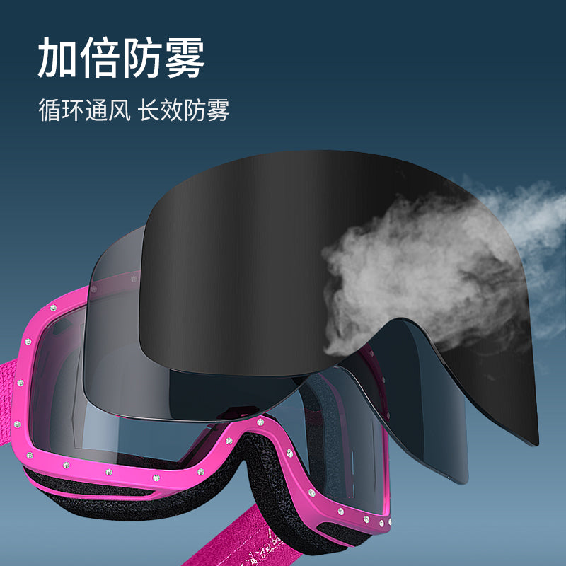 Lecage lecage алмаз снег очки национальная версия защита от солнца секс обертывание анти-туман анти-снег слепота анти-блик ветрозащитный мужчины и женщины с теми же моделями hd вентиляции столб поверхности открытый лыжный очки