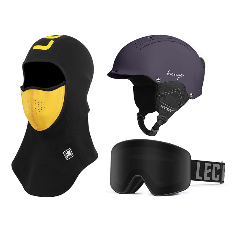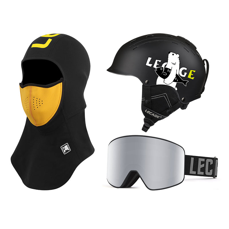 Lecage lecage ветрозащитный анти-туман магнитный снег очки теплая маска сочетание abs безопасности аварии лыжный шлем