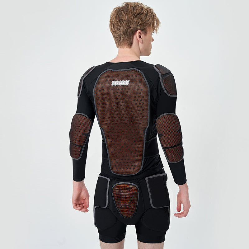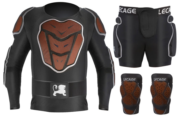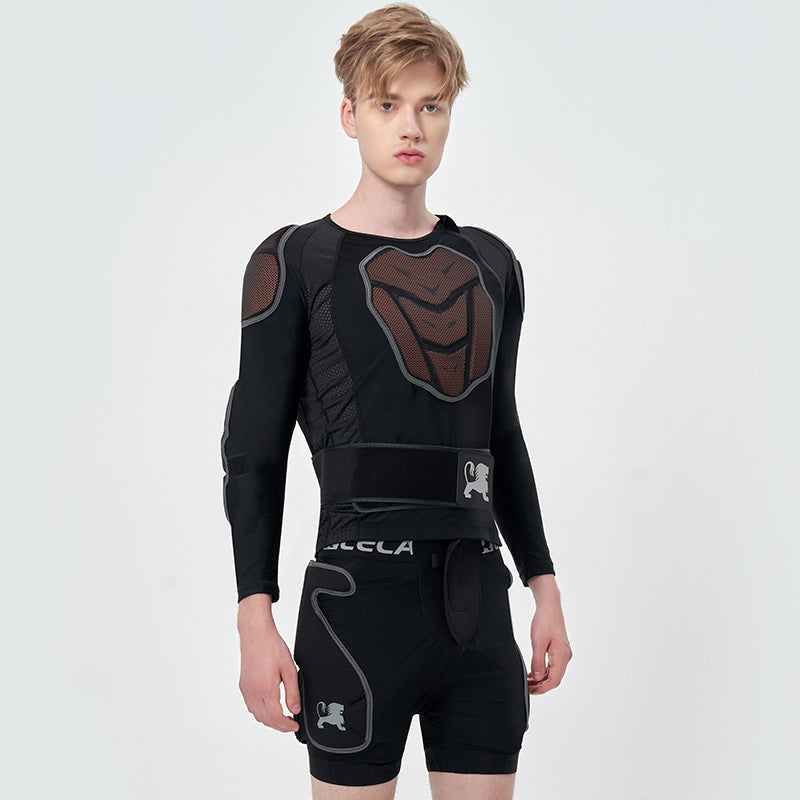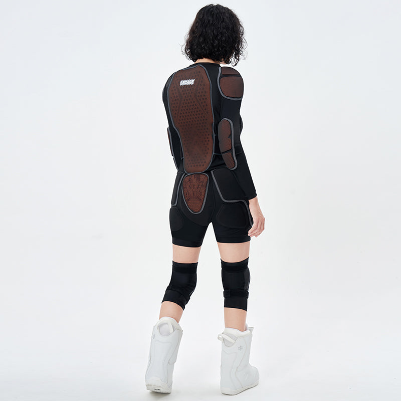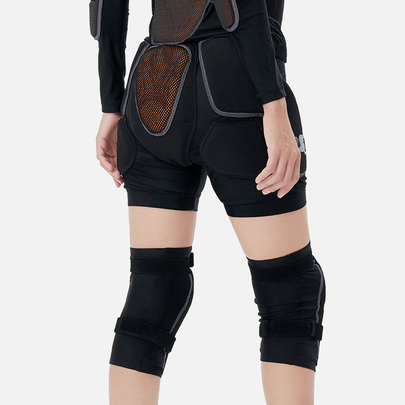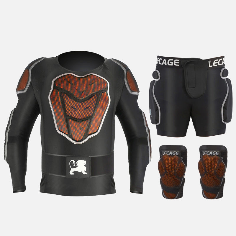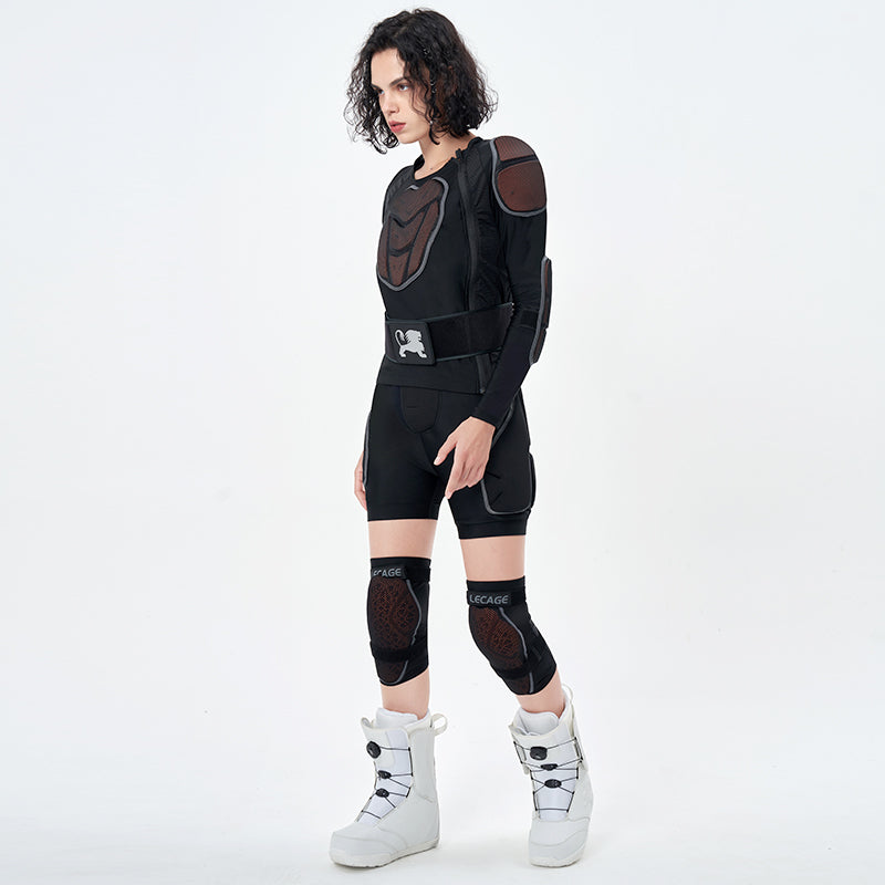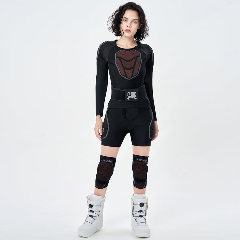 Snoubord va chang'i uchish uchun elastik likradan tayyorlangan universal himoya to'plami (tirsak yostiqchalari, tizza yostiqchalari, dumg'aza himoyasi). Ushbu uskuna faol chang'i uchish paytida zarbani yutish, zarbadan himoya qilish va shamollatishni ta'minlaydi.