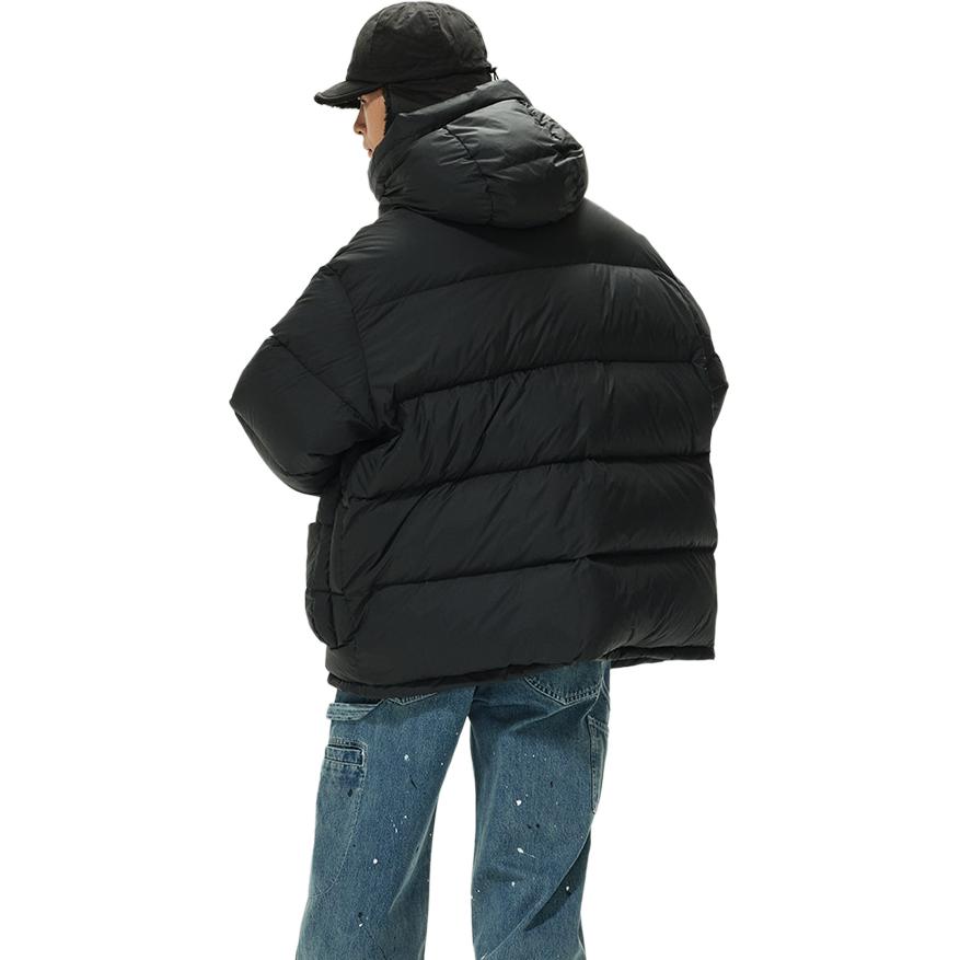Утепленный пуховик с капюшоном, наполненный смесью утиного пуха и пера, выполненный из легкого нейлона. Модель обеспечивает надежную защиту от холода и лаконичный дизайн для зимнего сезона.