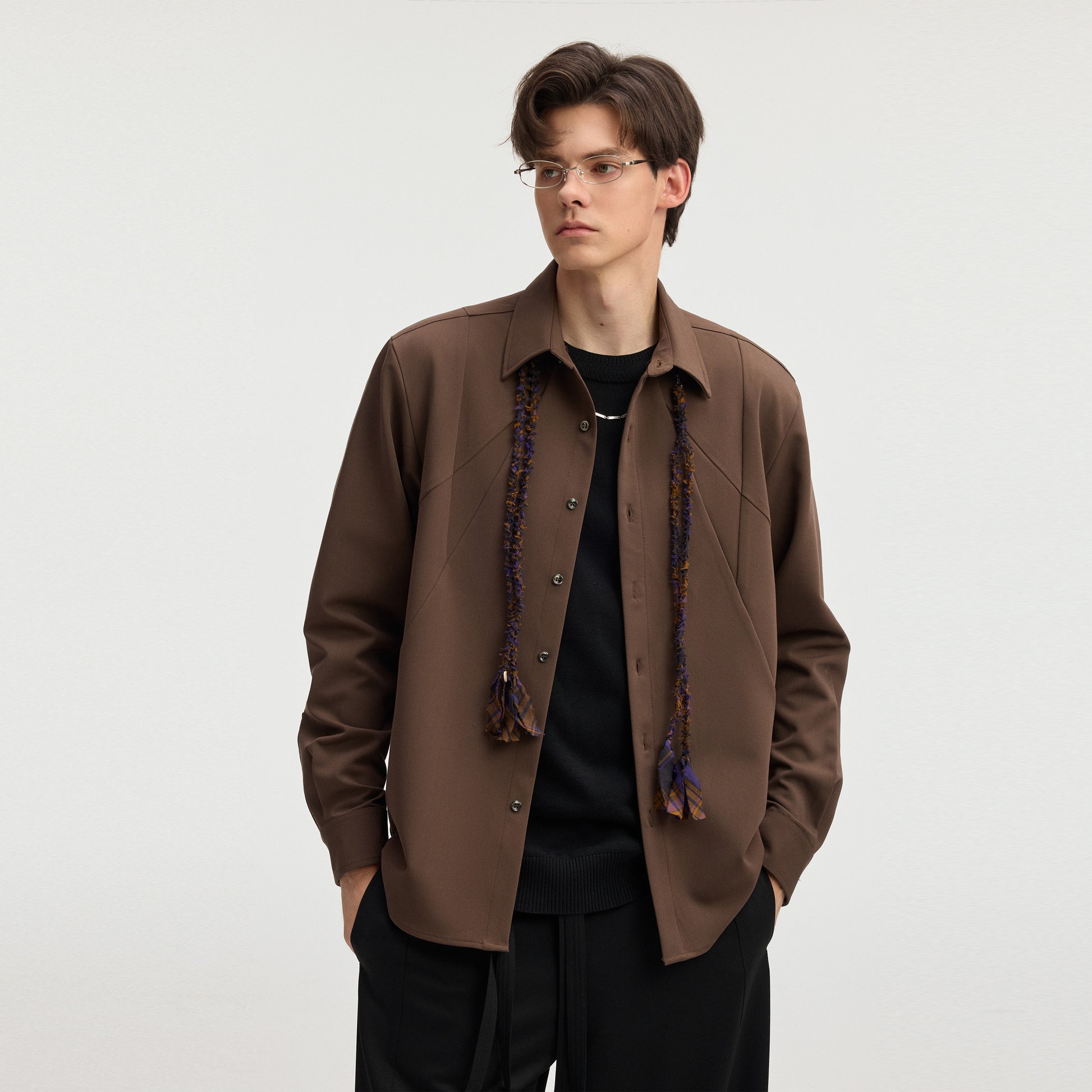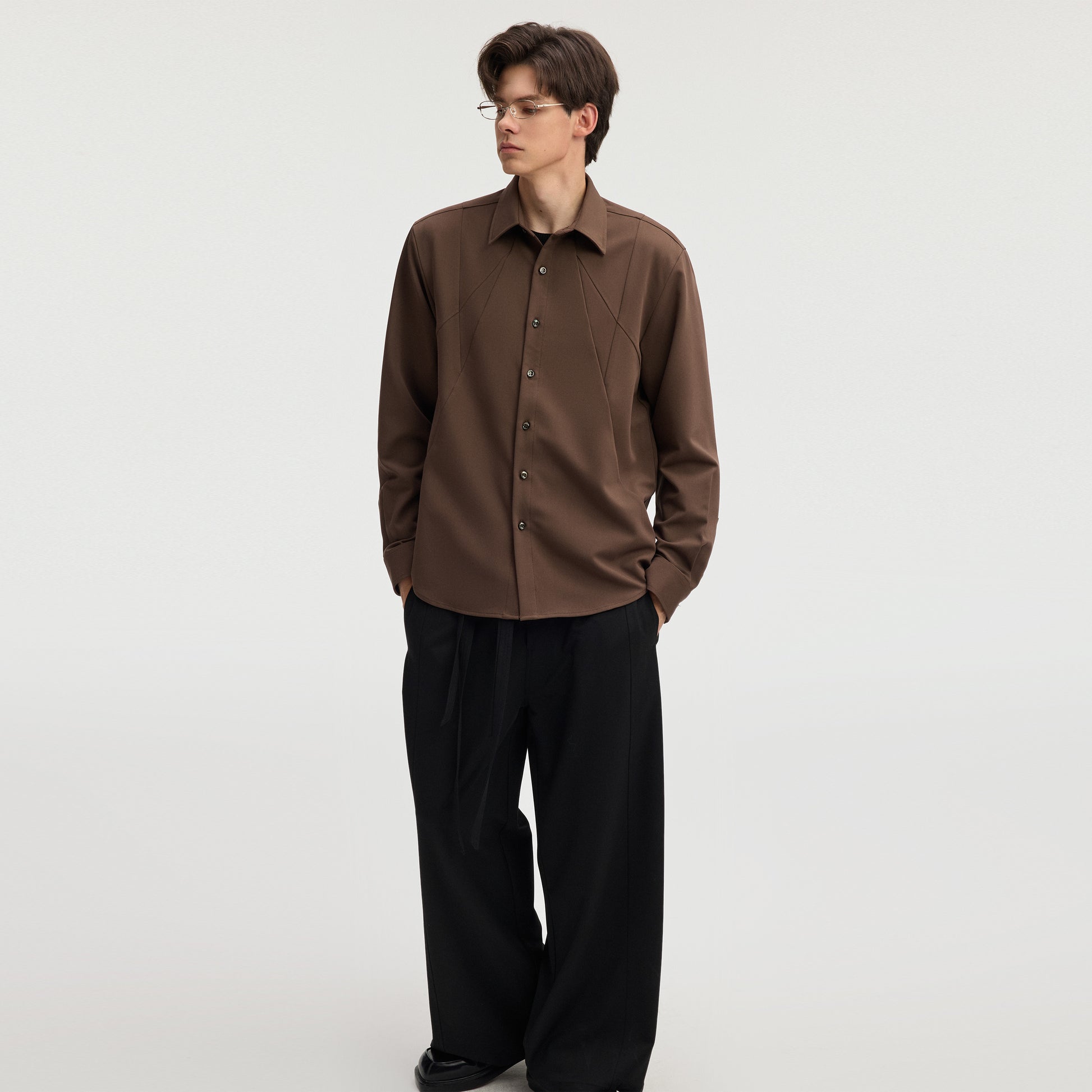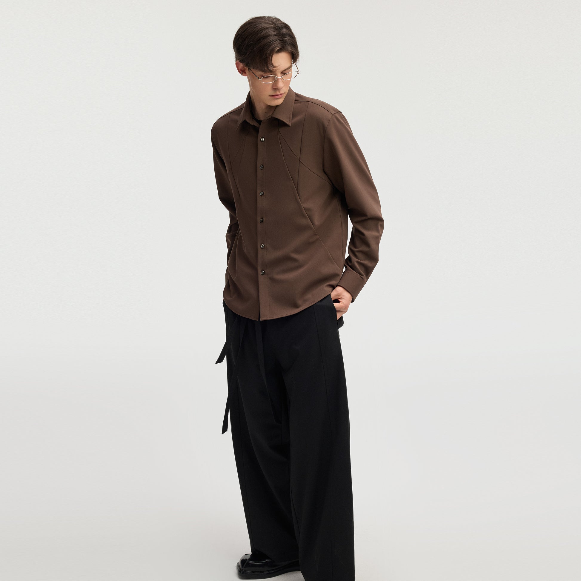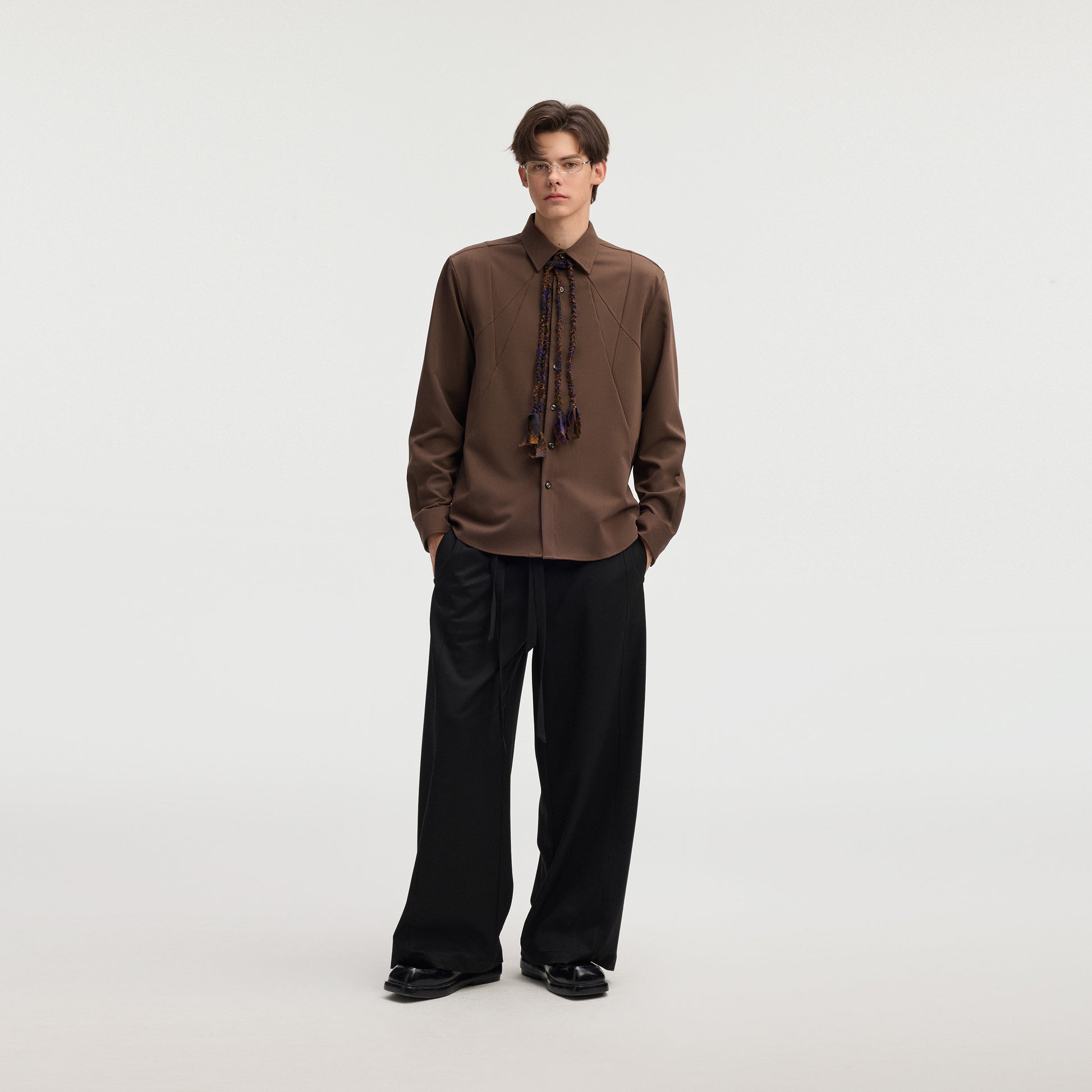 Kichik yoqali, uchli detallarga ega va ipak effektli asetat qoplamali, o'ziga tortadigan ko'ylak. Viskoza aralashmasidan tayyorlangan bu nafis buyum kuz mavsumi uchun zamonaviy va nafis qiyofa yaratadi.