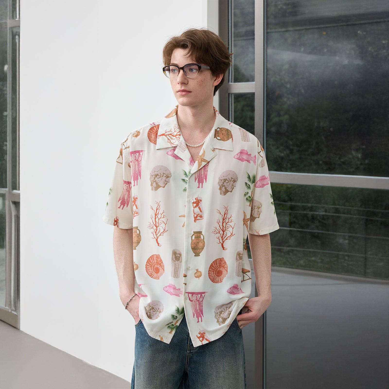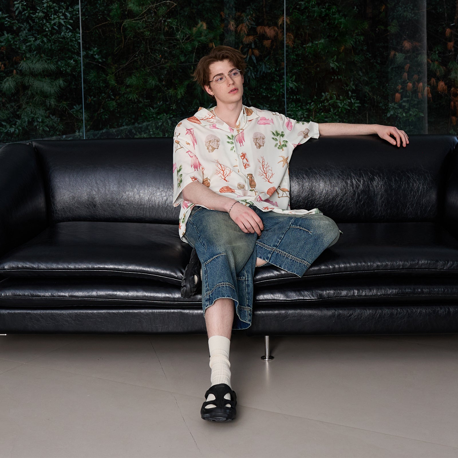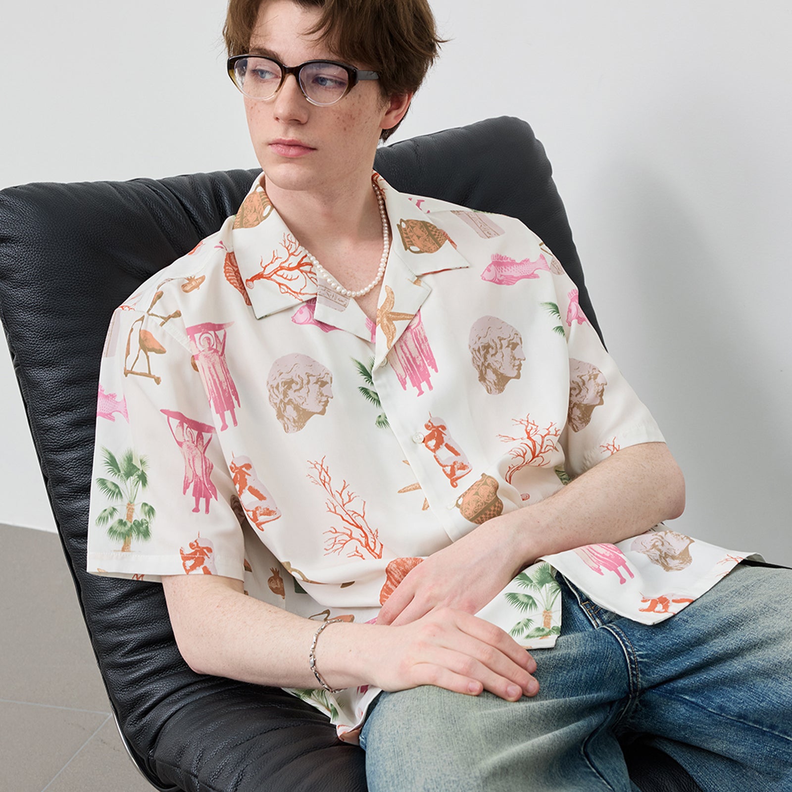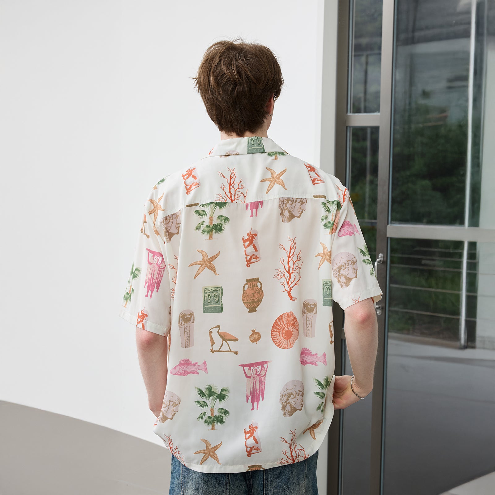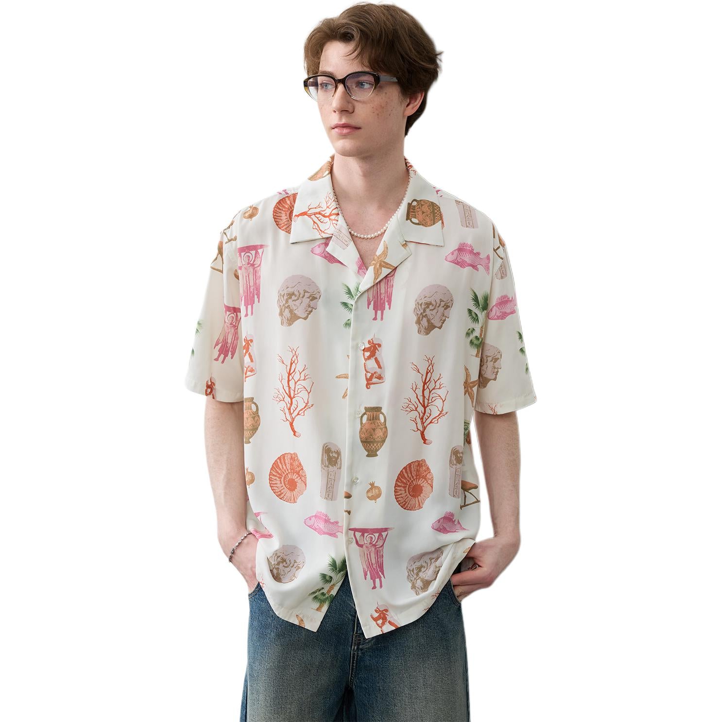Silliq poliesterdan tayyorlangan, kalit teshigi bo'yinbog'li, yengil, oqimli, keng Gavayi naqshli ko'ylak. Kalta yenglar va cho'zilgan yelkalar bilan bezatilgan ushbu retro uslubidagi buyum yoz va plyajdagi erkin ko'rinish uchun juda mos keladi.