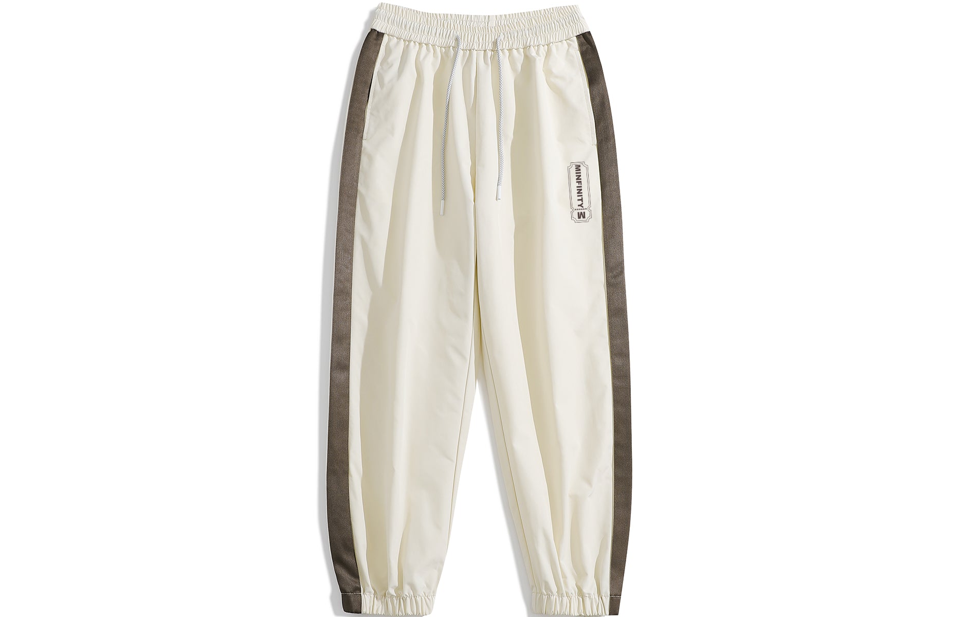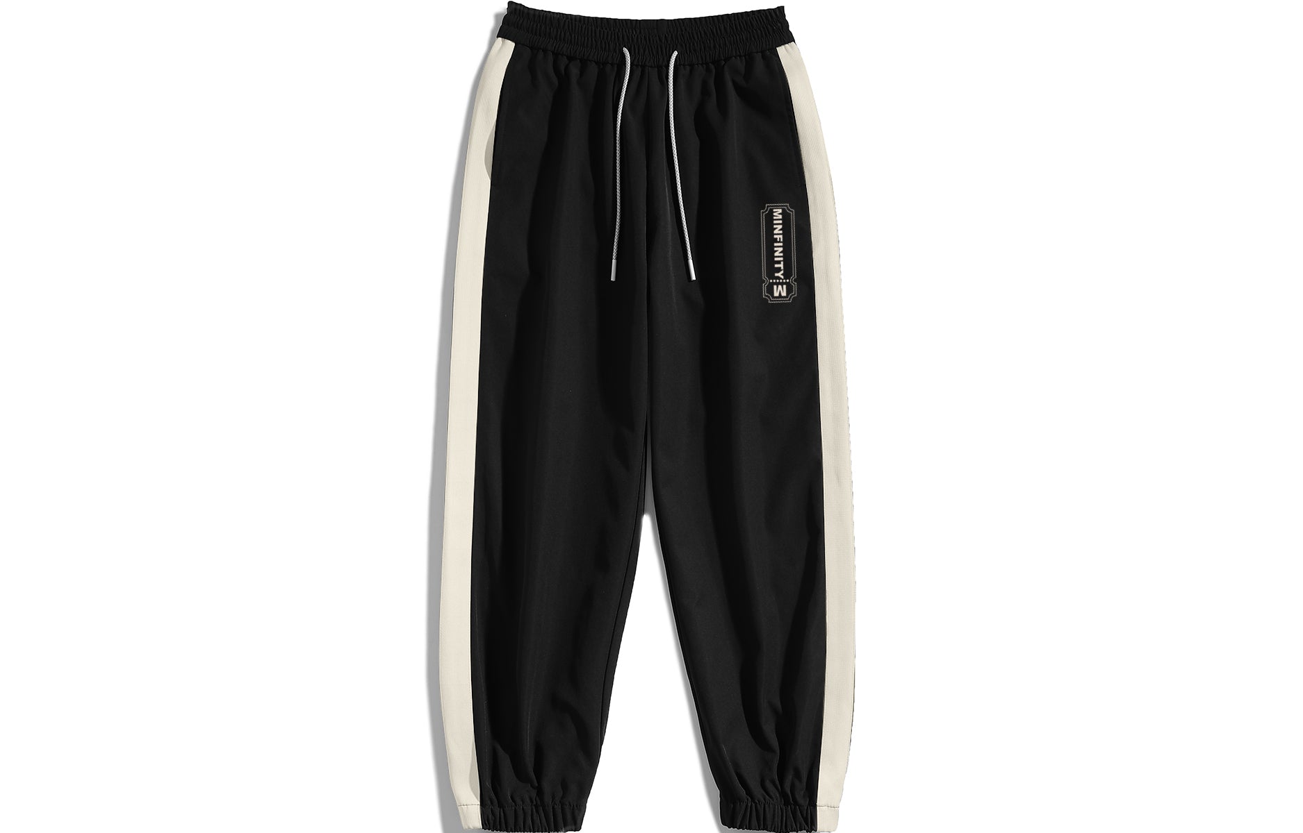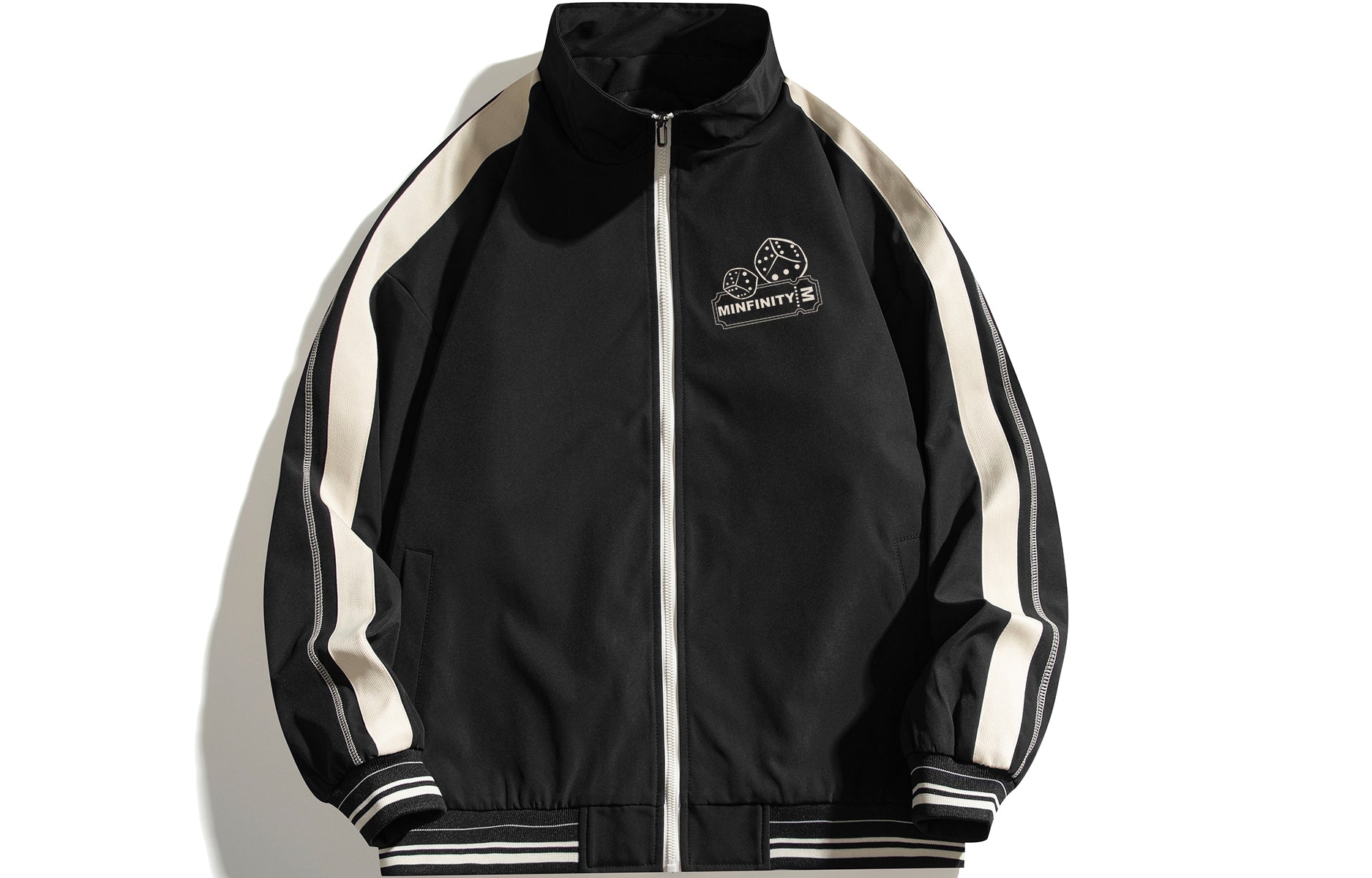 Zamonaviy Minfinity sport kostyumi retro, sport uslubida yaratilgan. U tik turgan yoqali va uzun yengli fermuarli kurtka hamda keng, tortma ipli sport shimlarini o'z ichiga oladi. Dizayn zar shaklidagi bosma, yozuvlar va qarama-qarshi panelli simmetrik chiziqlarga ega. Bo'shashgan o'lcham va elastik belbog' qulaylik va ko'p qirralilikni ta'minlaydi.
