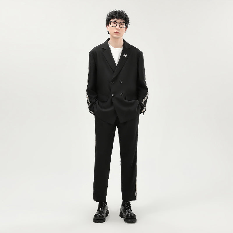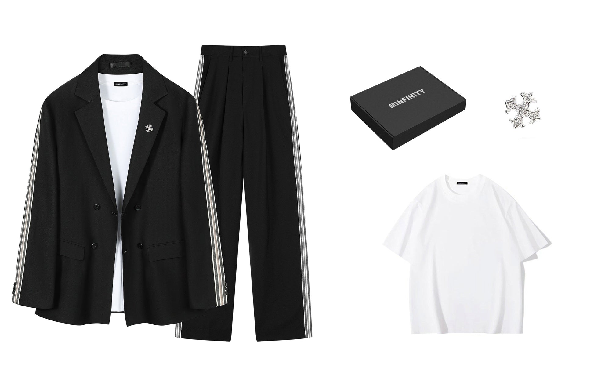 Ushbu nafis Minfinity kostyumi ko'cha uslubi va badiiy dizayn elementlarini o'zida mujassam etgan. Uning erkin va erkin kiyinishi kundalik kiyimlar va ish uchrashuvlari uchun qulaylikni ta'minlaydi. Klassik yoqali va uzun yengli ikki ko'krakli kurtka, tekis shimlar bilan birgalikda zamonaviy qiyofa yaratadi. Kontrastli chiziqlar va aralash panellar zamonaviy ko'rinish beradi. Sovg'a qutisiga solinadi.