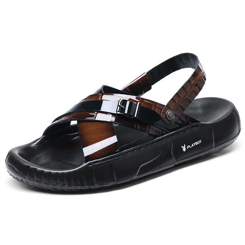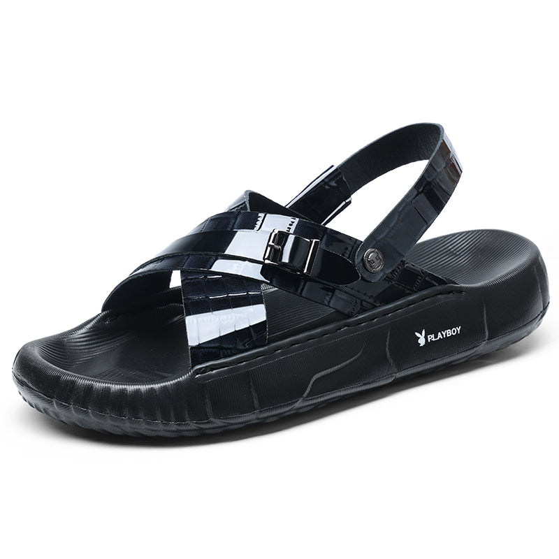 Minimalist uslubdagi Playboy erkaklar plyaj sandallari. Ochiq oyoq uchi va qulay bir pog'onali dizaynga ega bo'lgan bu sirpanmaydigan sandallar yengil va amaliy. Rezina taglik bilan ular yozgi dam olish uchun juda mos keladi.