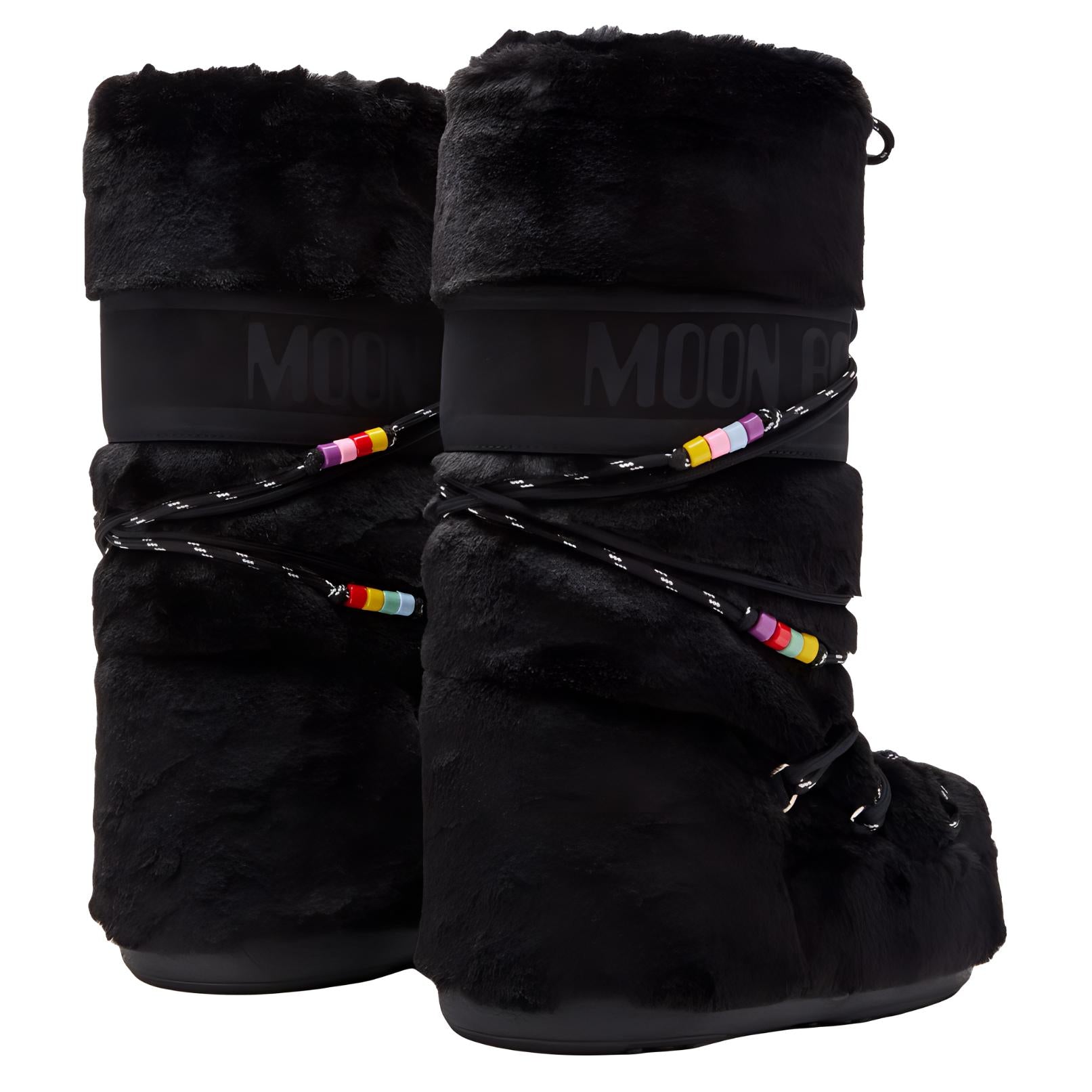 Moon boot icon round toe colourful lace up mid calf snow boots unisex black
