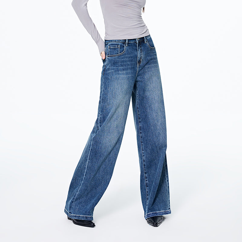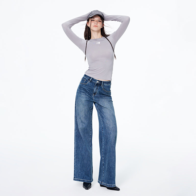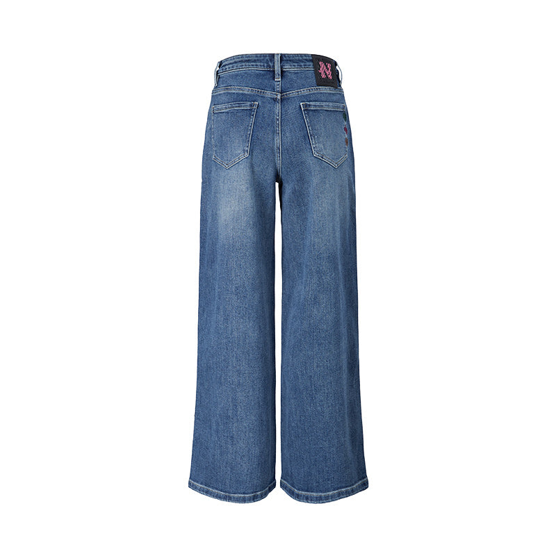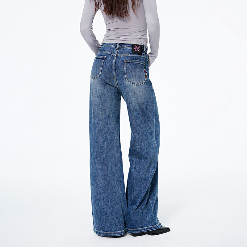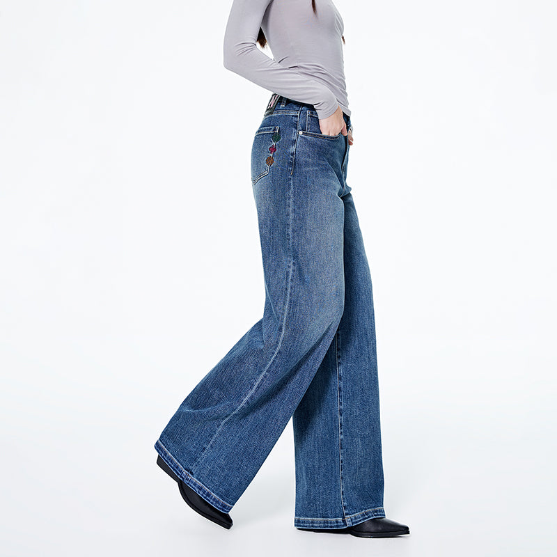Navigare italyancha kichkina yelkanli qayiq modasi retro yupqa cho'ntak kashtasi paxta tuyg'usi yuvilgan keng oyoqli jinsi ayollar jinsi ko'k