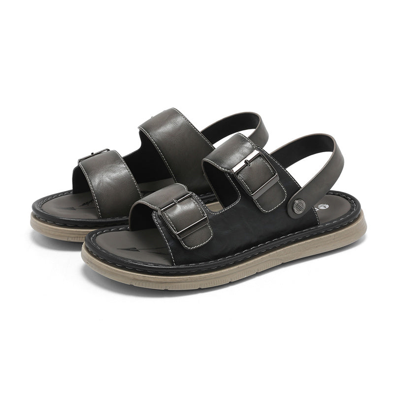 Yumshoq sun'iy charmdan tayyorlangan klassik retro uslubidagi plyaj sandallari. Ochiq burunli dizayn va tekis poliuretan taglik bu yozda qulaylik va qulaylikni ta'minlaydi.