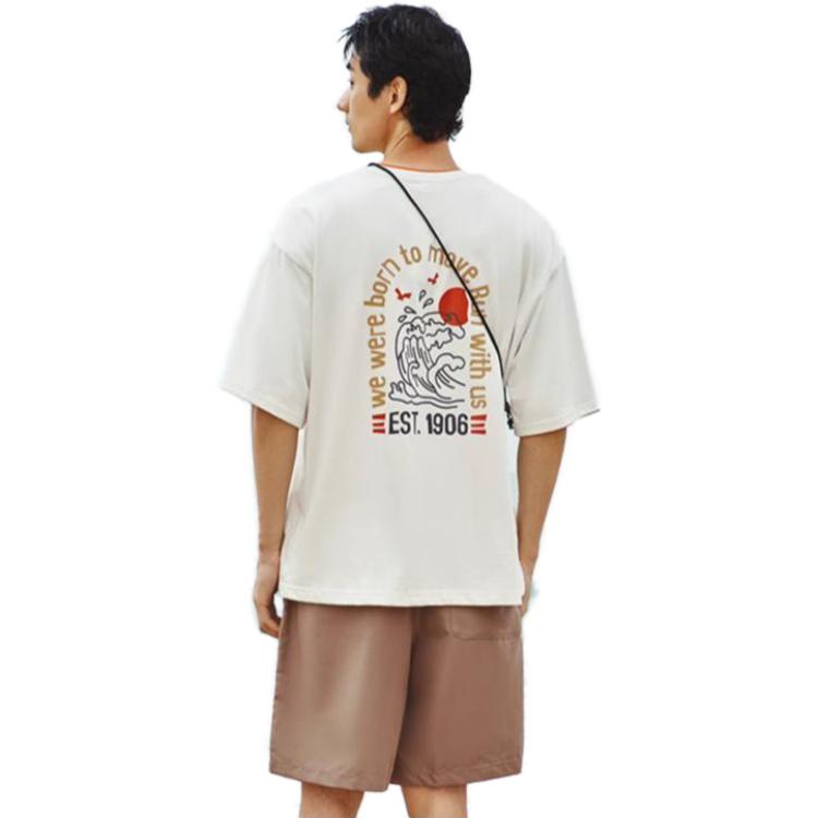 New Balance Amerika retro orqasi alfanumerik bosma sport tasodifiy ekipaj bo'yinli kalta yengli erkaklar xaki futbolkasi