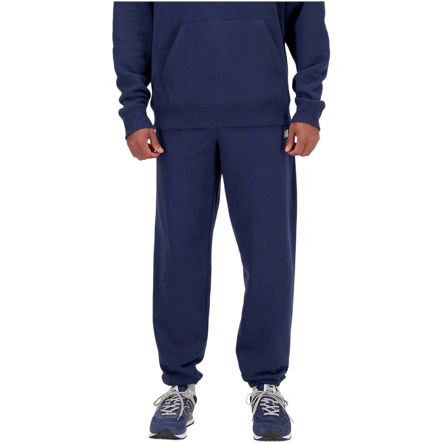 Мужские трикотажные спортивные брюки с фирменным логотипом New Balance, выполненные в удобном формате jogger с завязками на поясе. Модель обеспечивает комфортную посадку, подходит для повседневной носки и активного образа жизни в любое время года.
