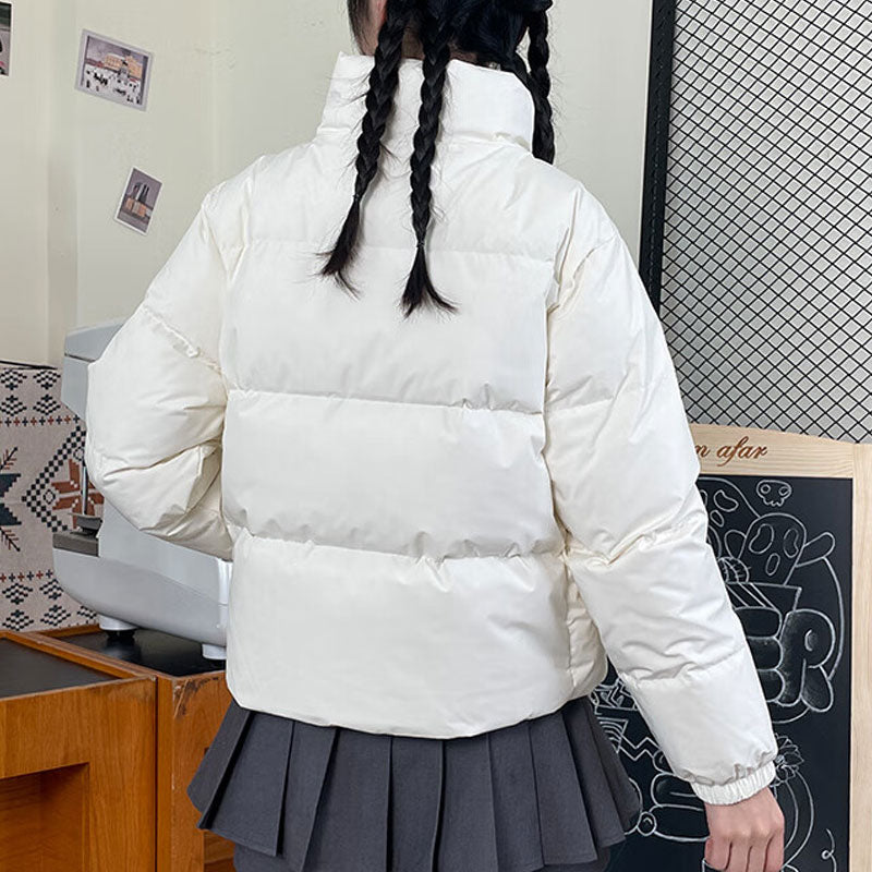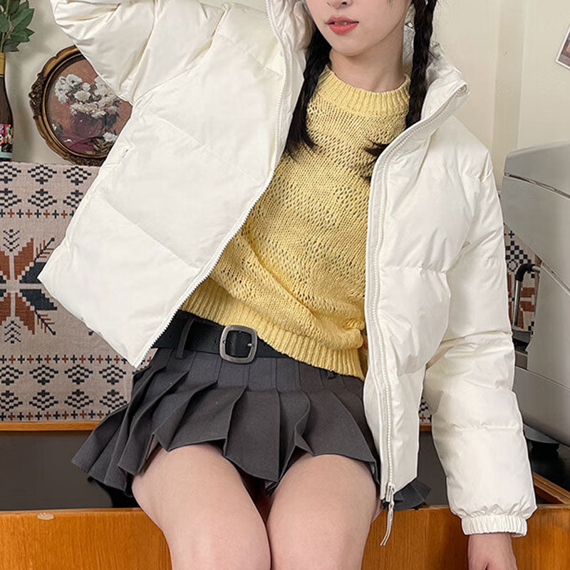 Yangi balans tekis rangli stend yoqa shamolga chidamli issiq past ko'ylagi ayollar oq