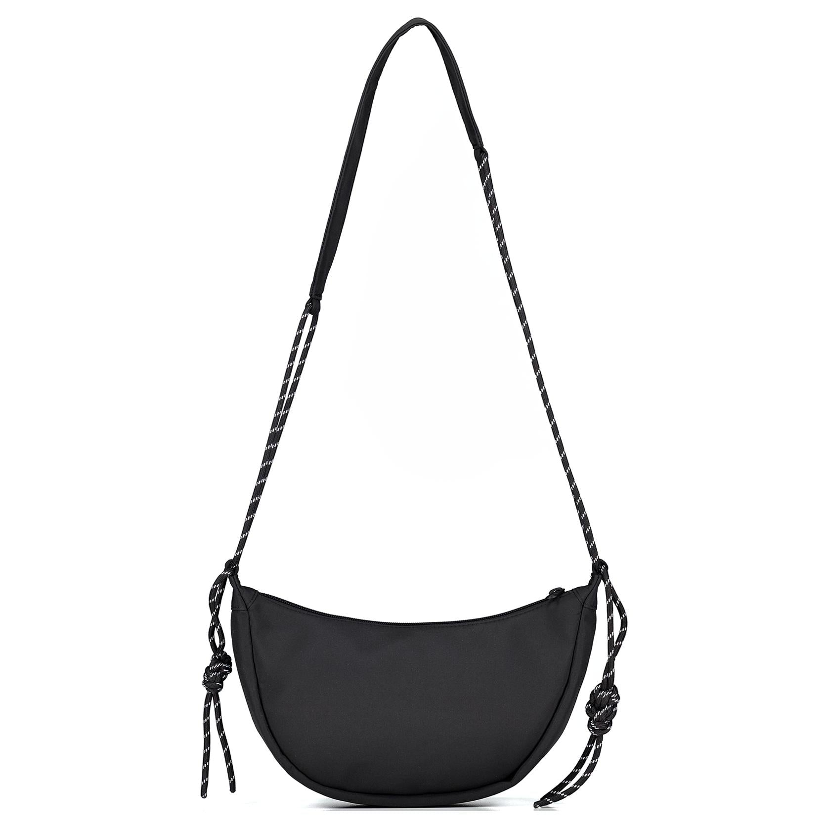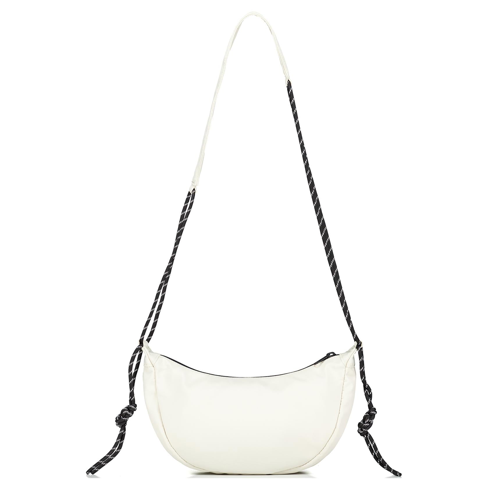 Сумка-полумесяц из ткани с логотипом бренда на молнии и регулируемым ремнем через плечо. Компактная модель обеспечивает практичность и подходит для прогулок.