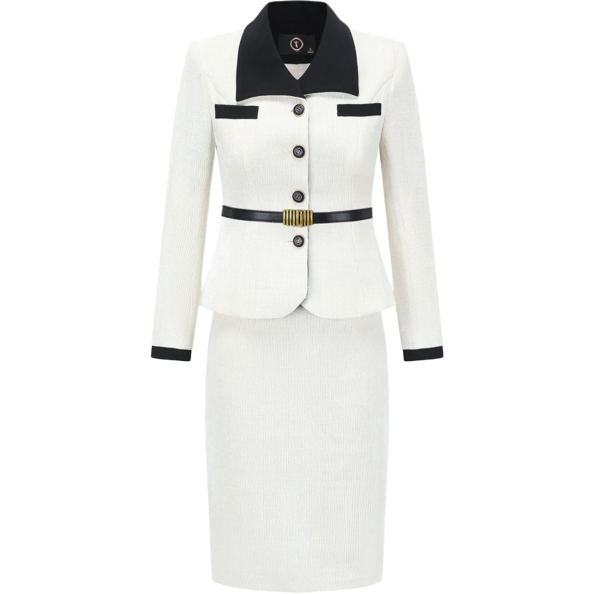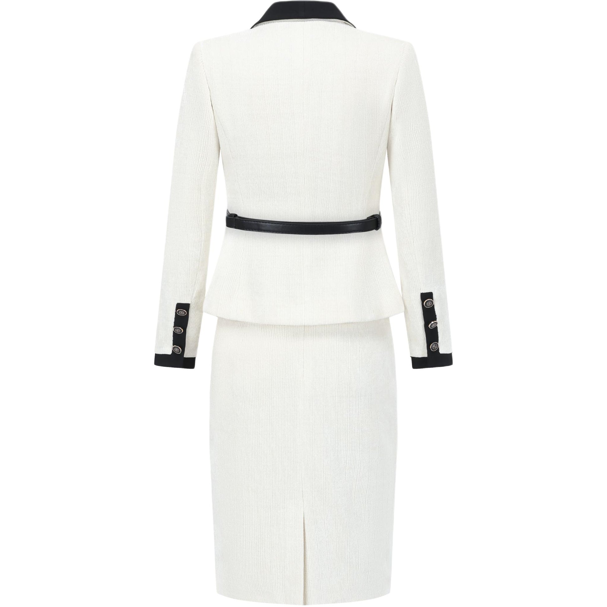 Элегантный комплект в стиле «малый парфюм» с укороченным жакетом и юбкой-полу, создающий благородный и женственный образ для холодного сезона. Подходит для города, офиса и выходов. Состав: полиэстер, эластан и смешанные волокна.