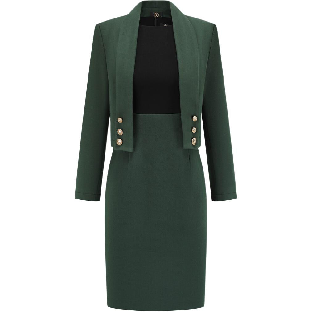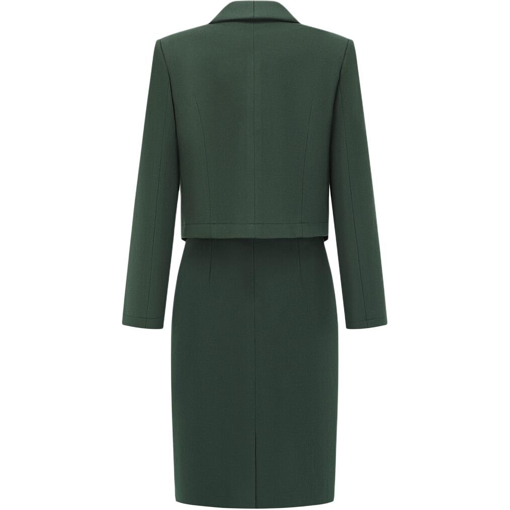 Bir soyali kichkina parfyum uslubidagi kostyum yuz bilan to'qnashuv rangli liboslar keksa hissiyotli yubka kostyumi ayol to'q yashil