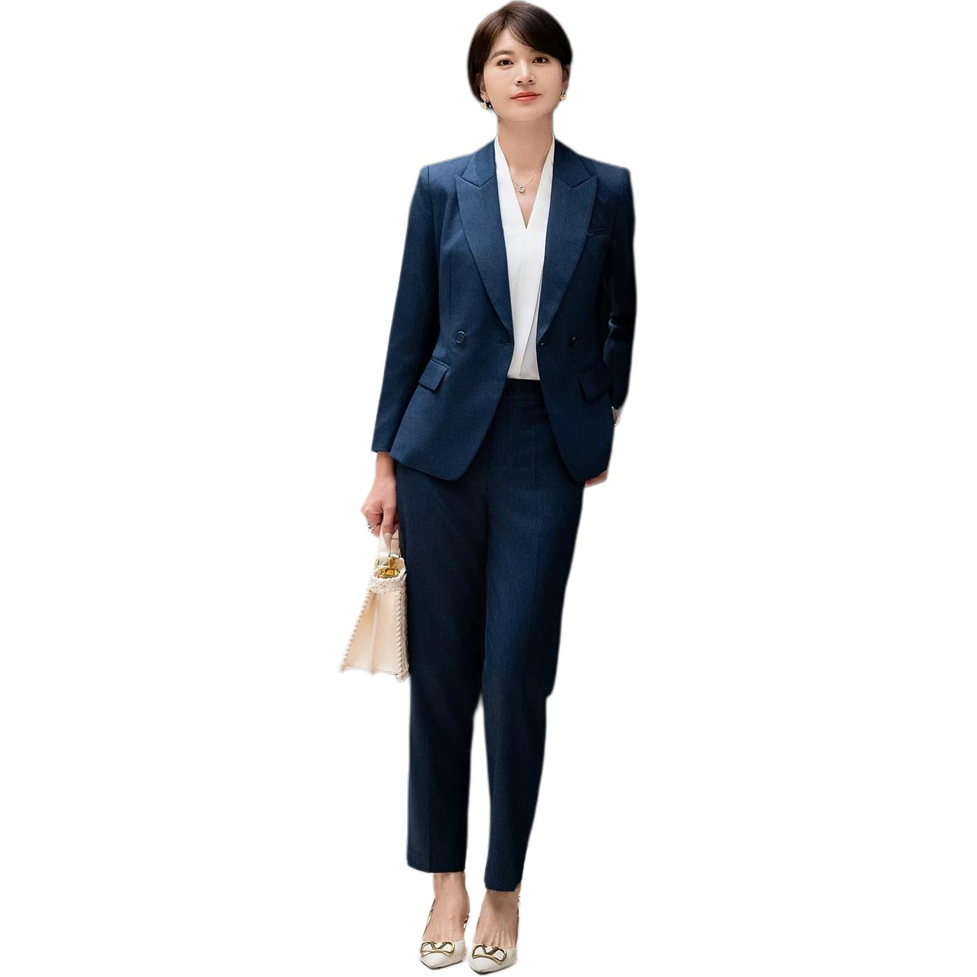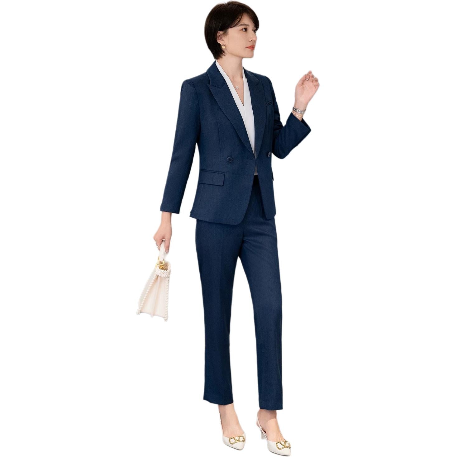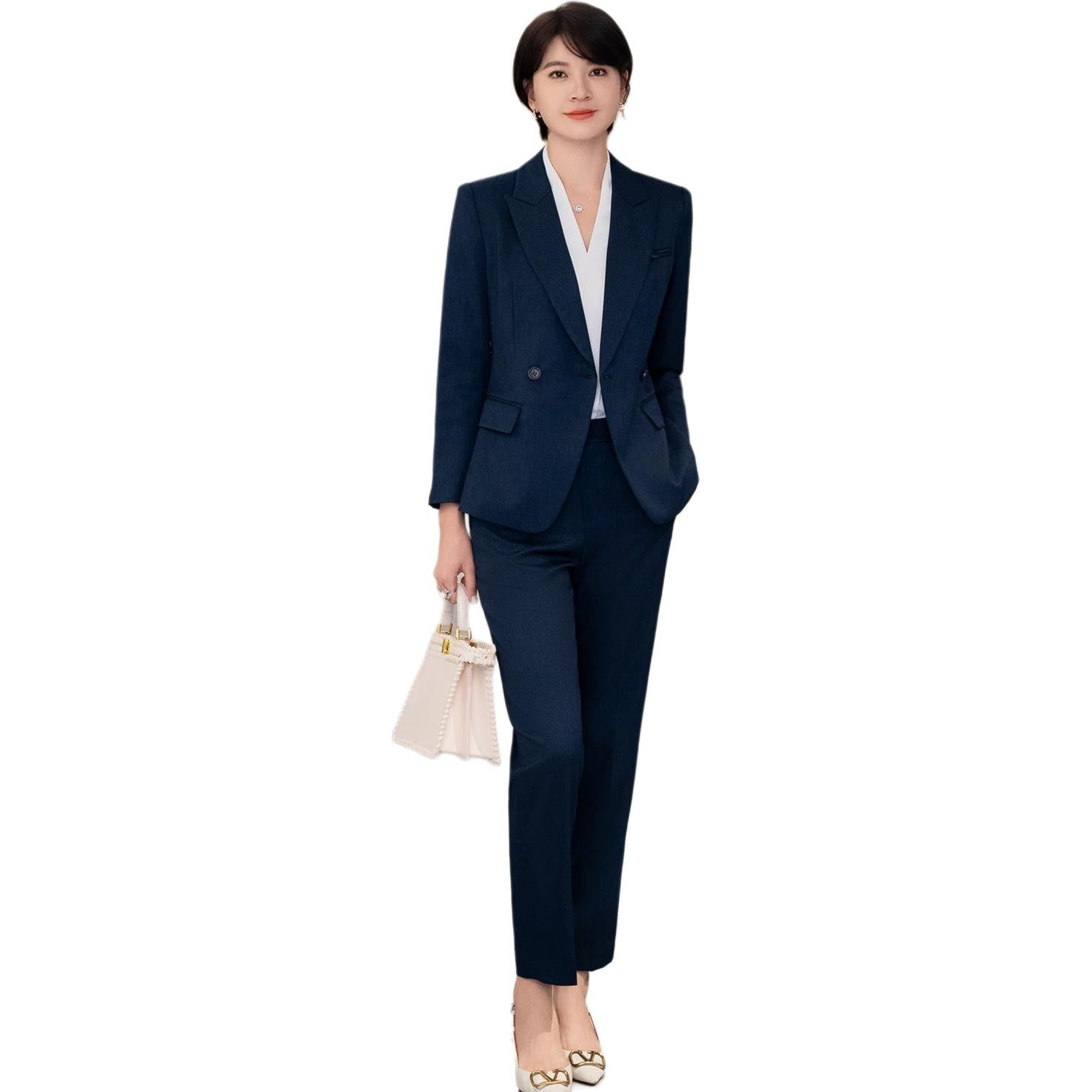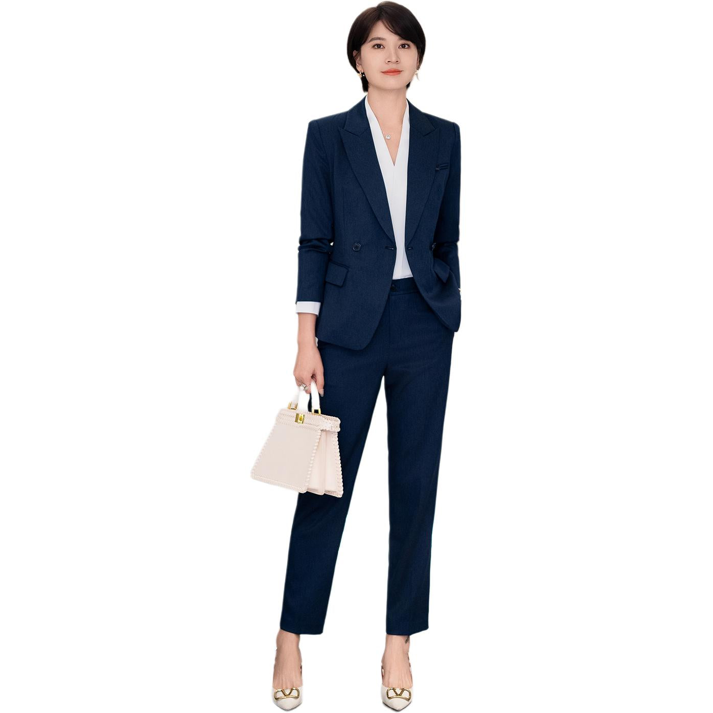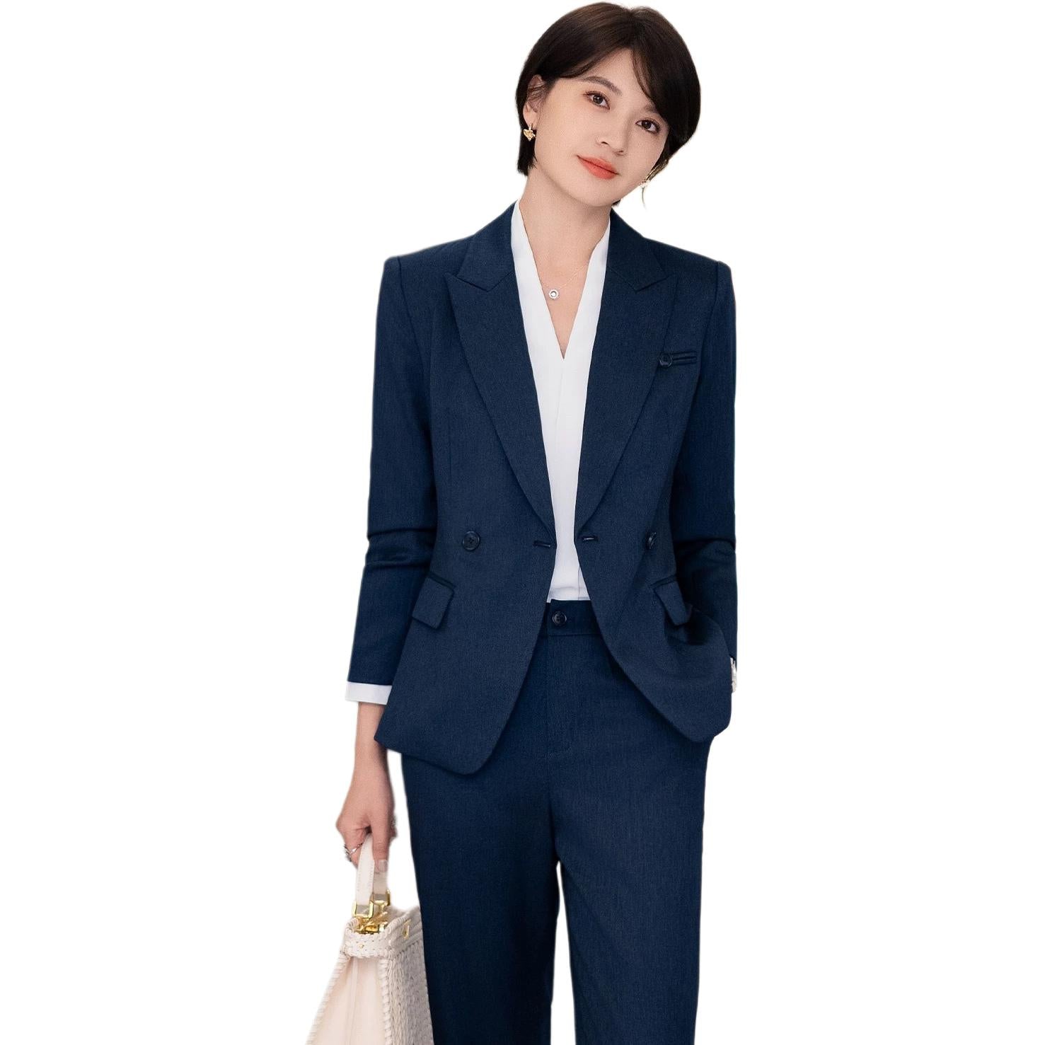 Bir parcha to'plam sovg'a qutisi tekis rangli uzun yengli ko'ylagi qulay oddiy shimlar salqin adaçayı imperator opasi ish joyi ayollar kostyumi kostyumi ayol to'q ko'k