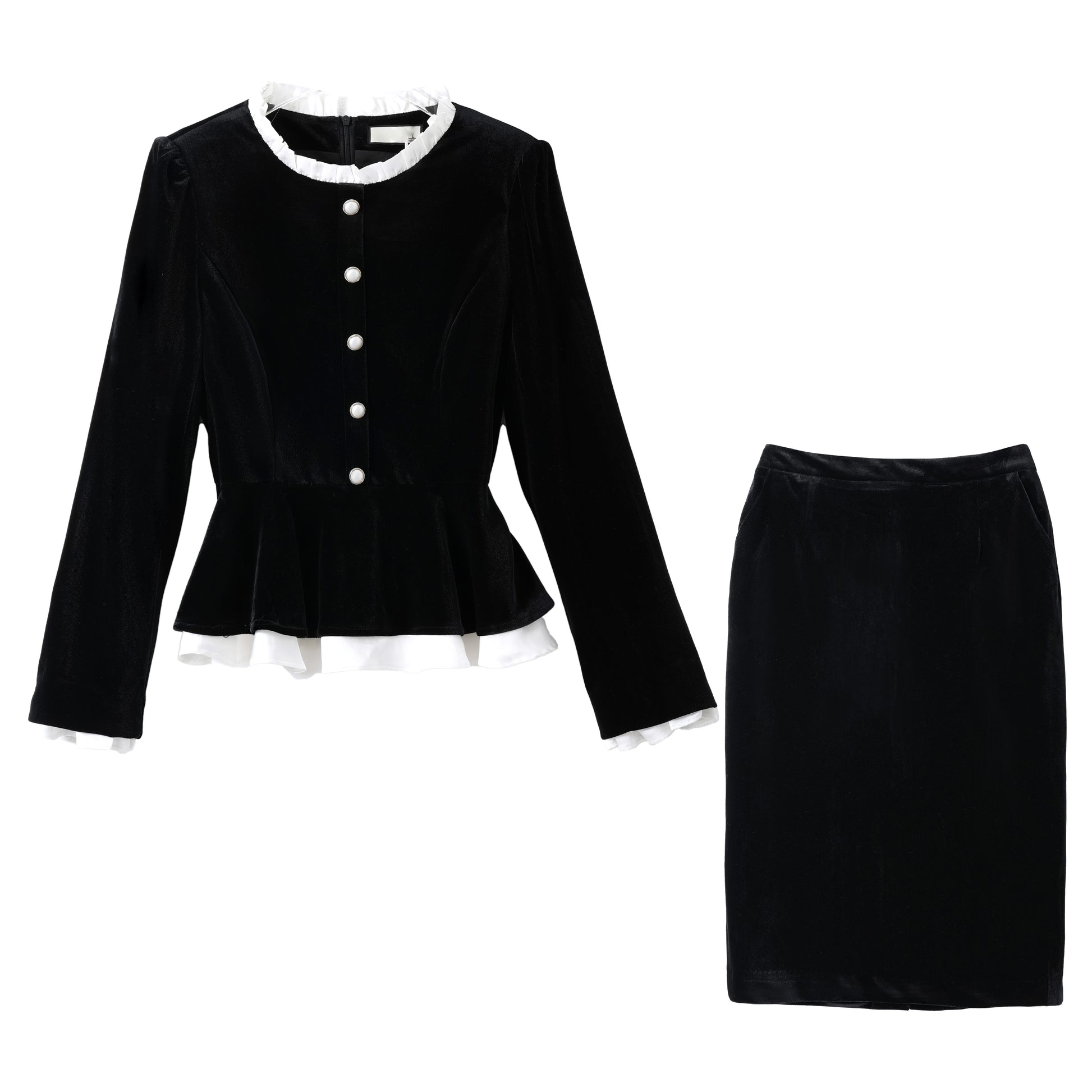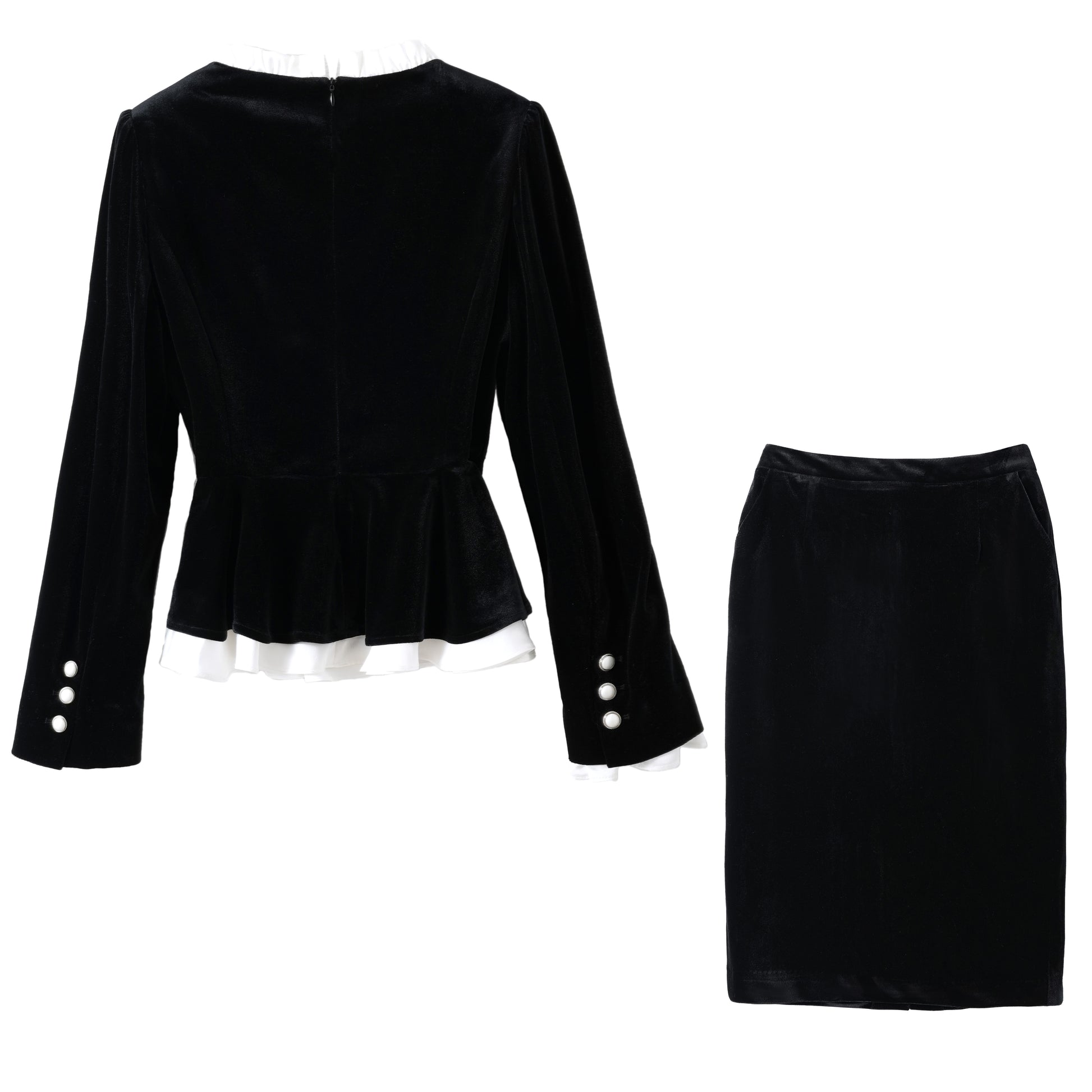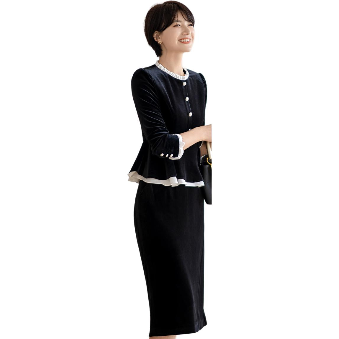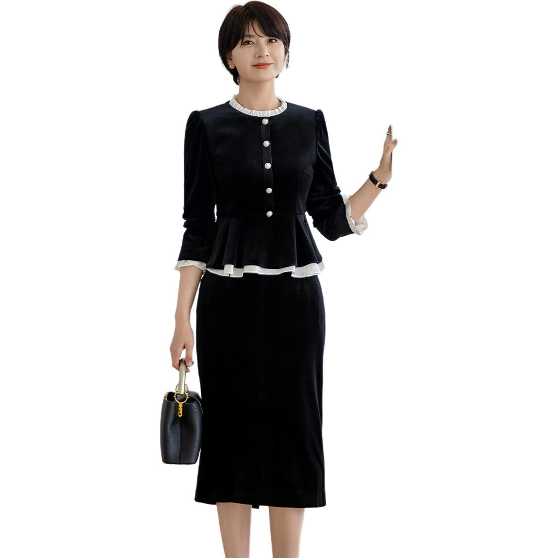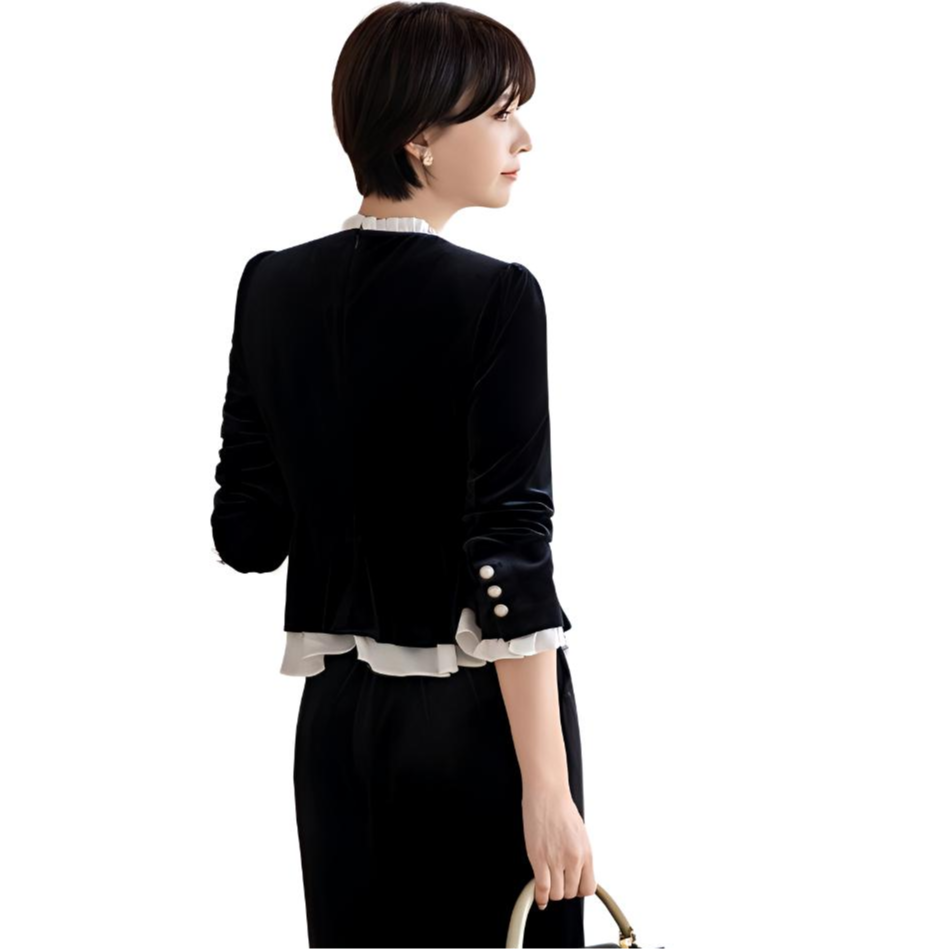 Bitta sayoz baxmal qora frantsuz engil hashamatli kichik parfyumeriya zali gaz kostyumi ayollar qora