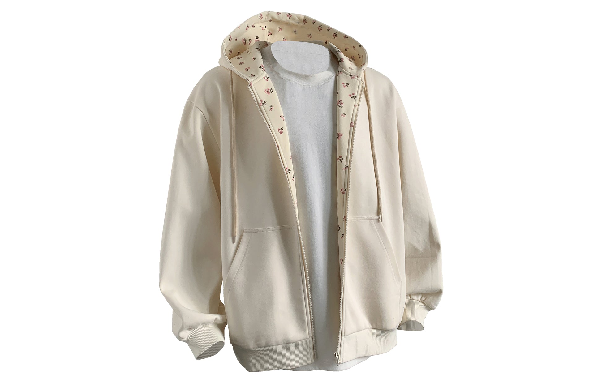 Gulli naqshli, kapshonli va tushirilgan yelkali, erkin, keng kapshonli ko'ylak. Ushbu ko'p qirrali poliester buyum fasllar orasidagi o'tish uchun yosh va zamonaviy ko'rinish yaratadi.