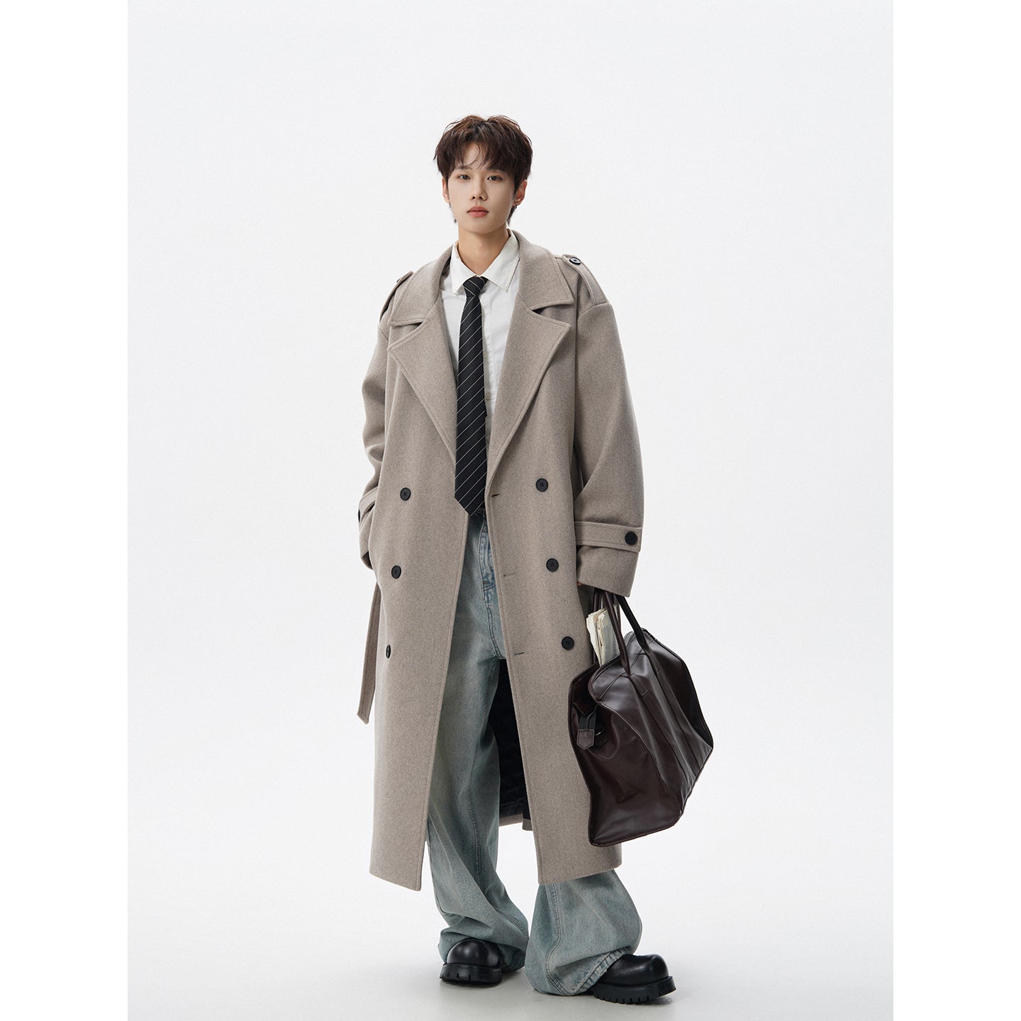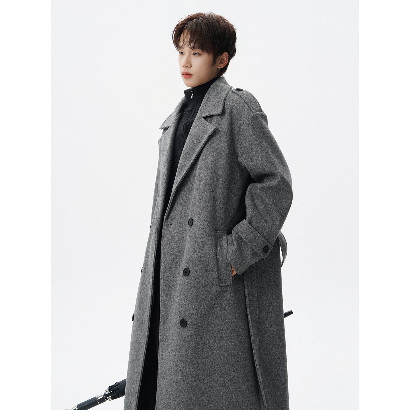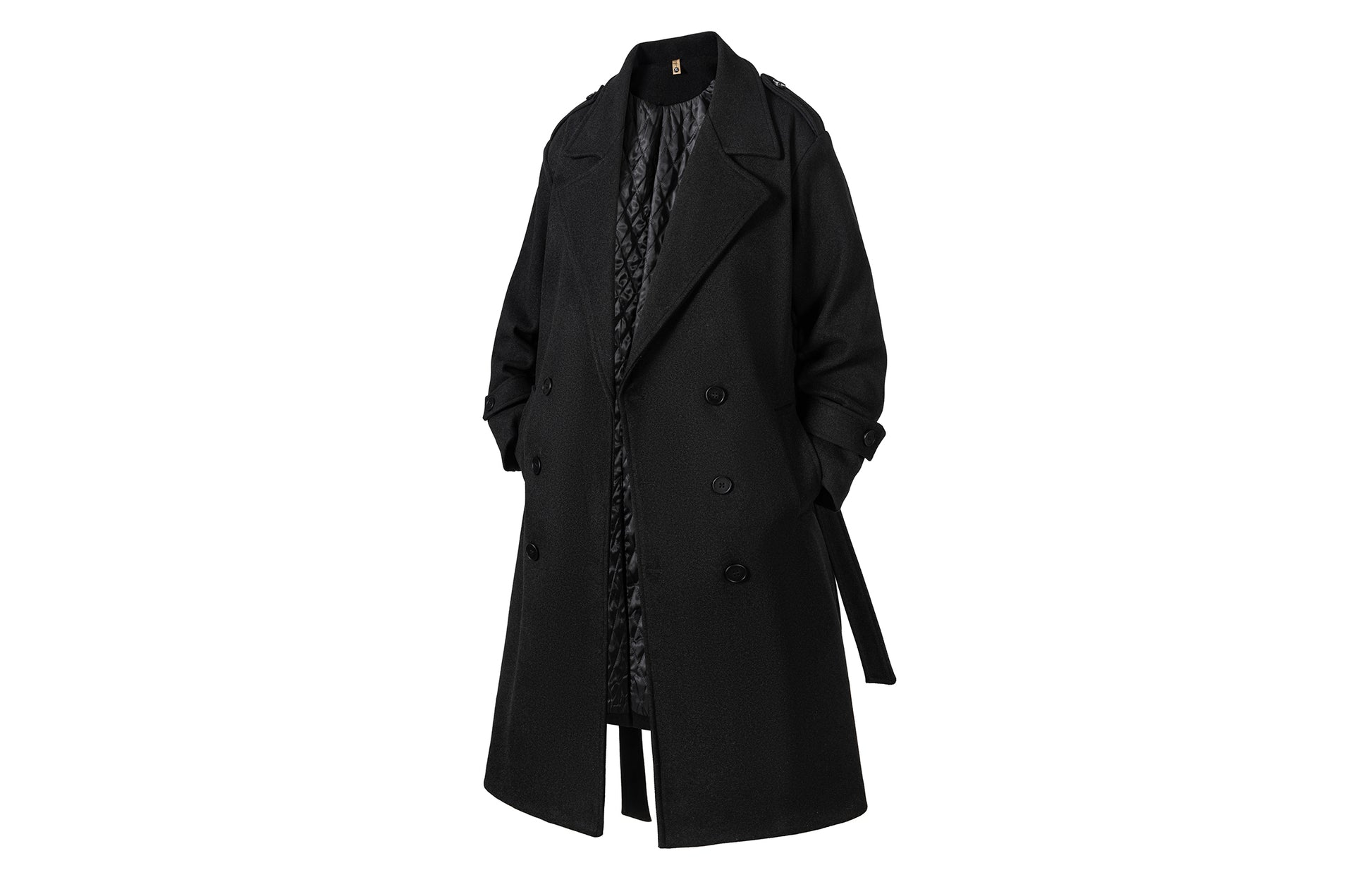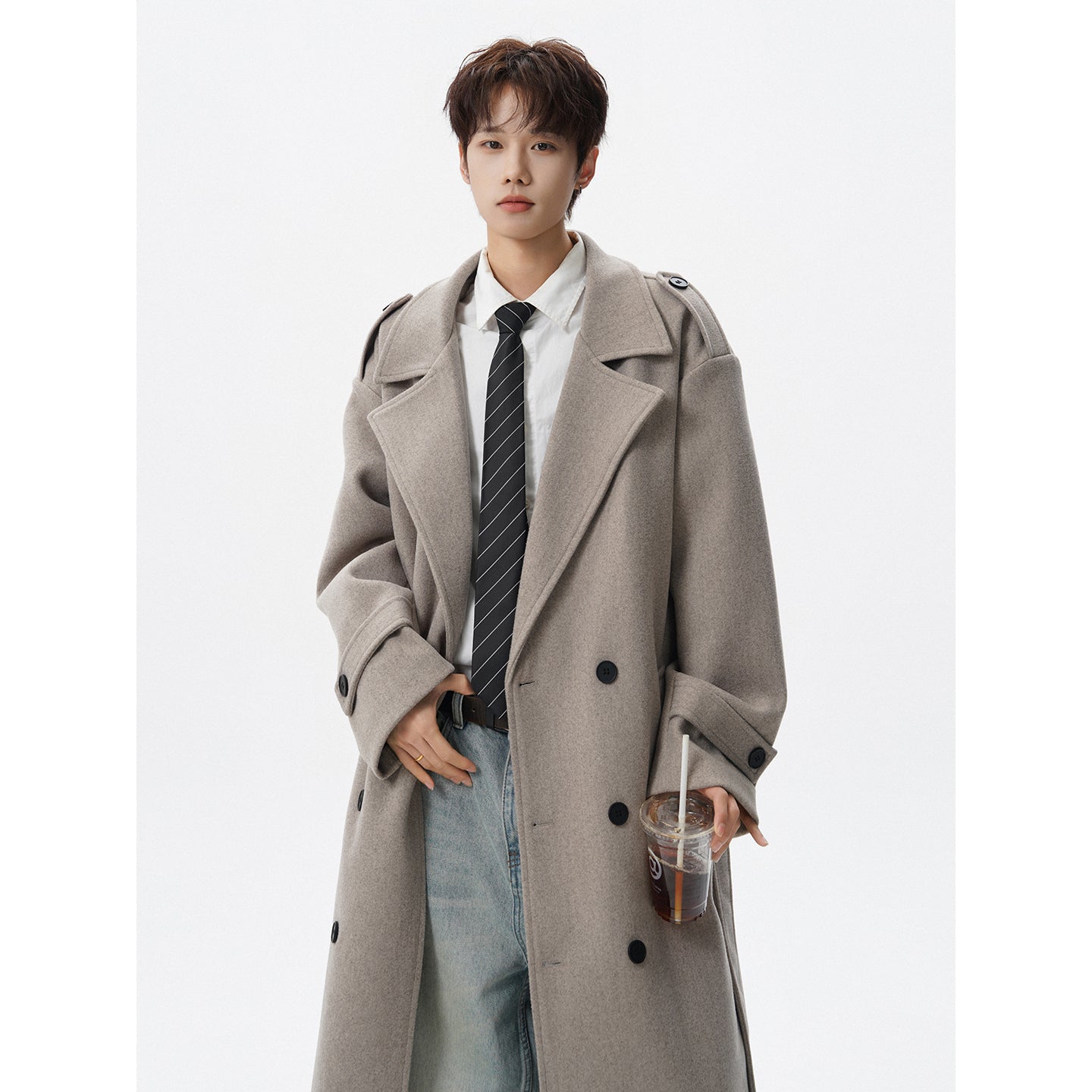 Мужское пальто PAEFA в корейском английском стиле с двубортной застежкой, длинными рукавами и свободным силуэтом. Модель выполнена из полиэстера с подкладкой из полиэстера, сочетает винтажный американский стиль и практичность для прохладной погоды.