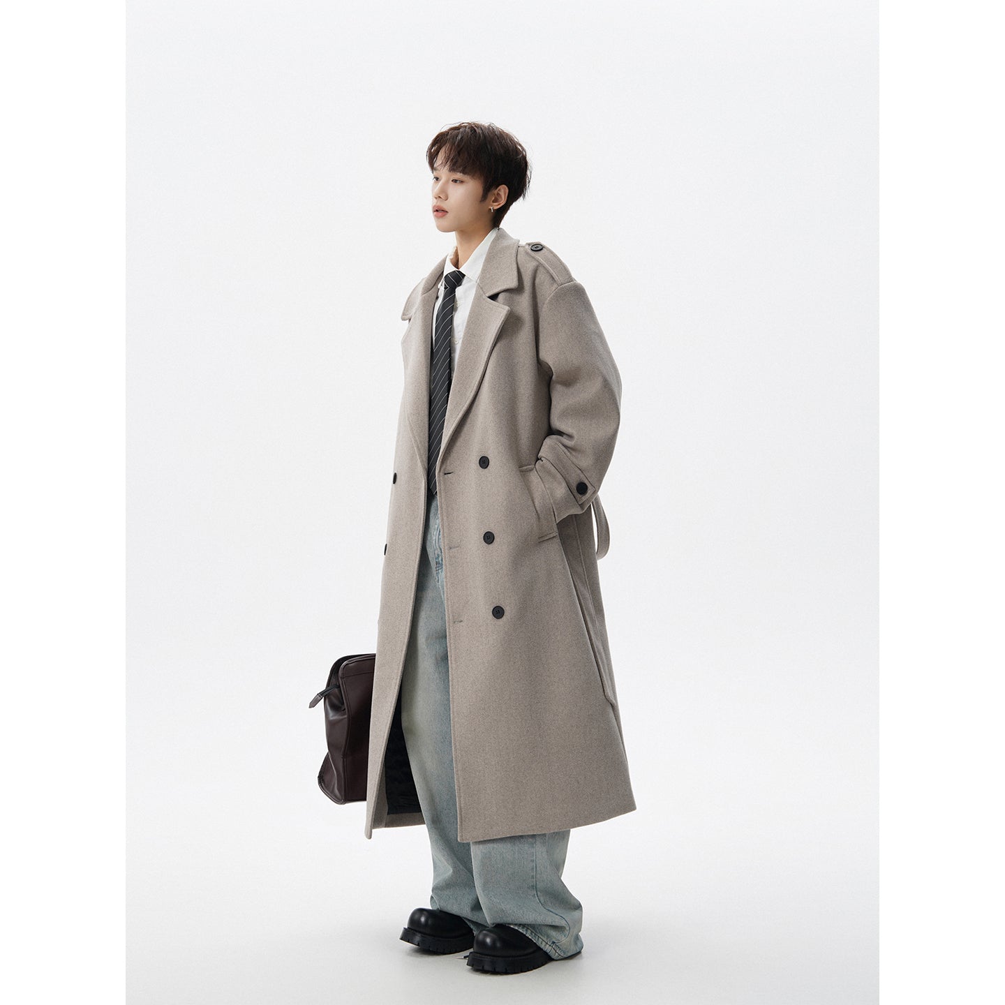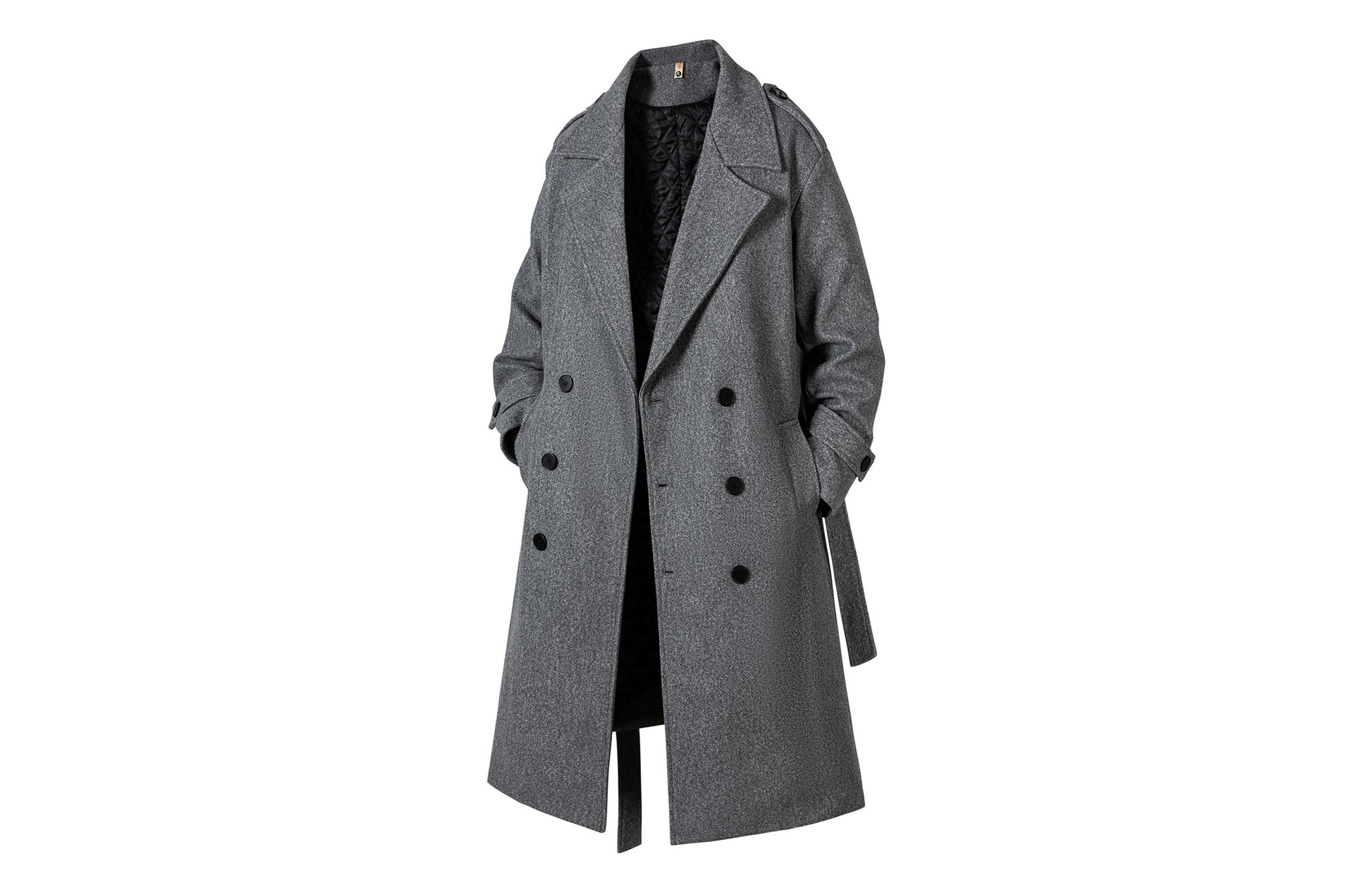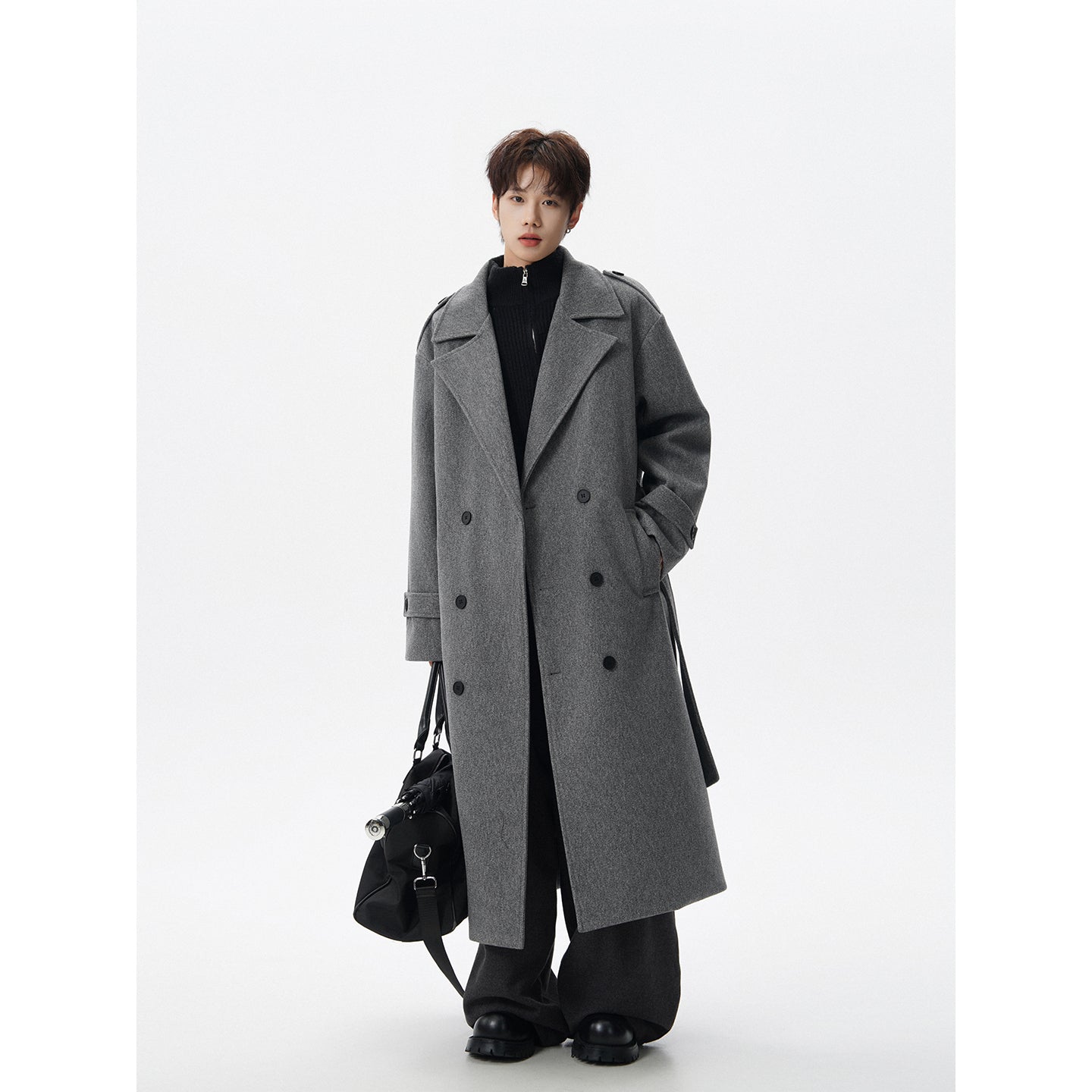 Мужское пальто PAEFA в корейском английском стиле с двубортной застежкой, длинными рукавами и свободным силуэтом. Модель выполнена из полиэстера с подкладкой из полиэстера, сочетает винтажный американский стиль и практичность для прохладной погоды.