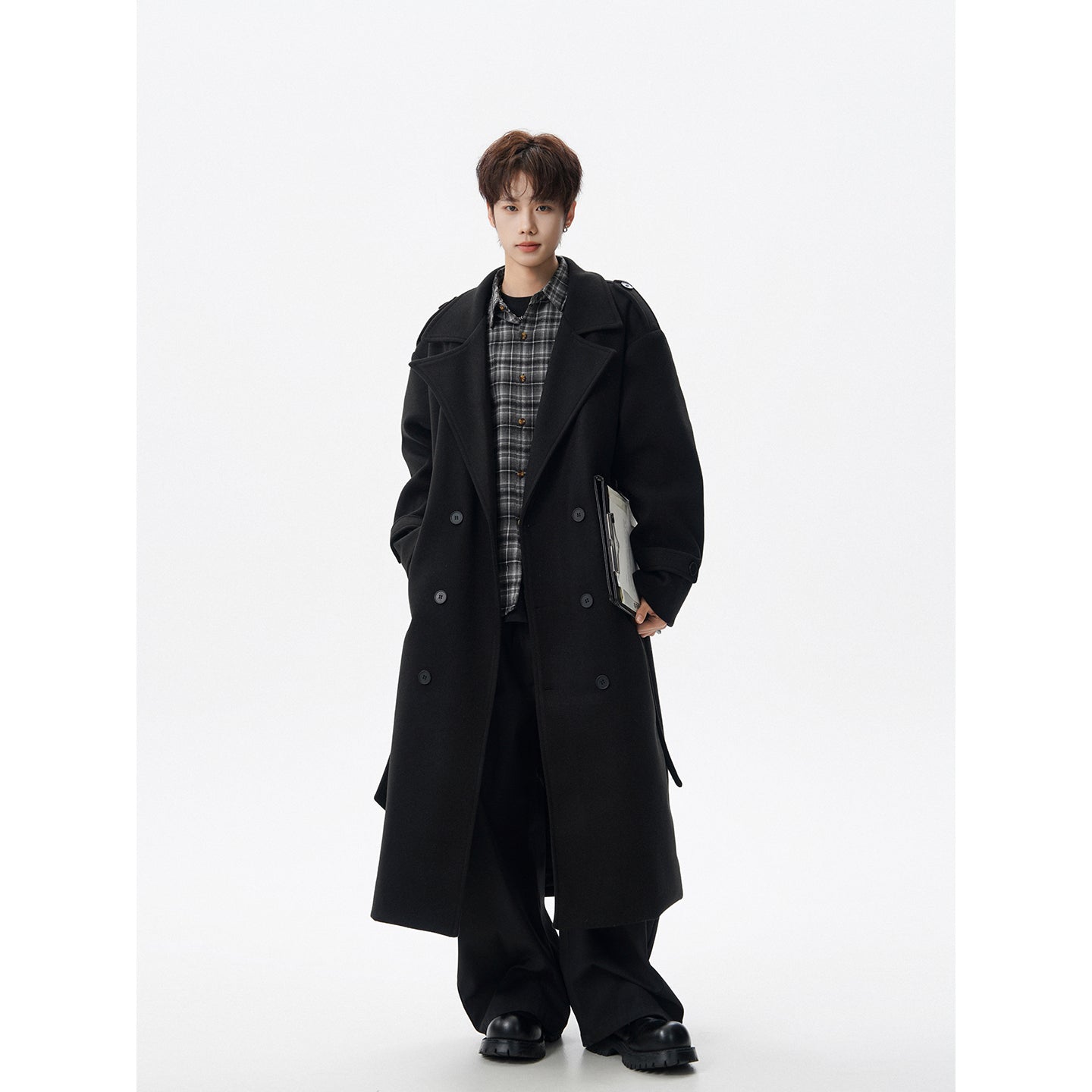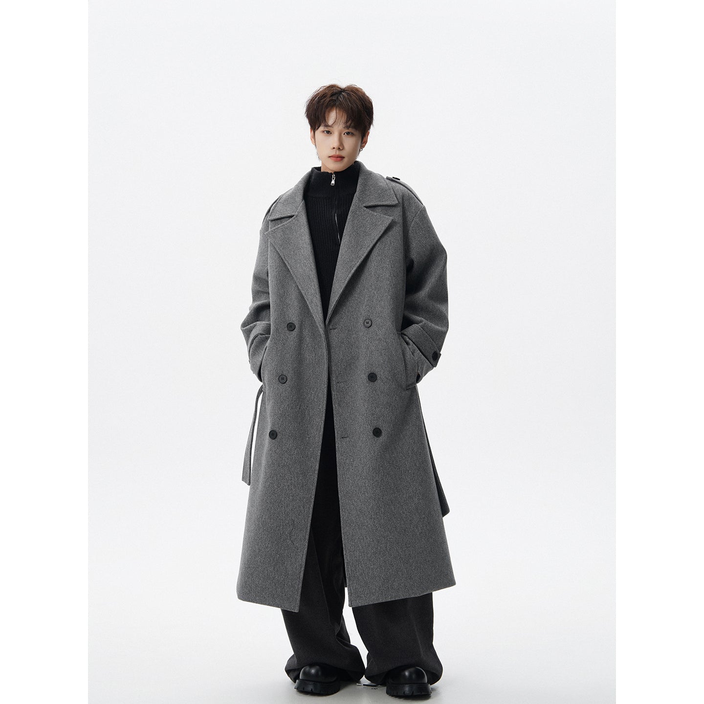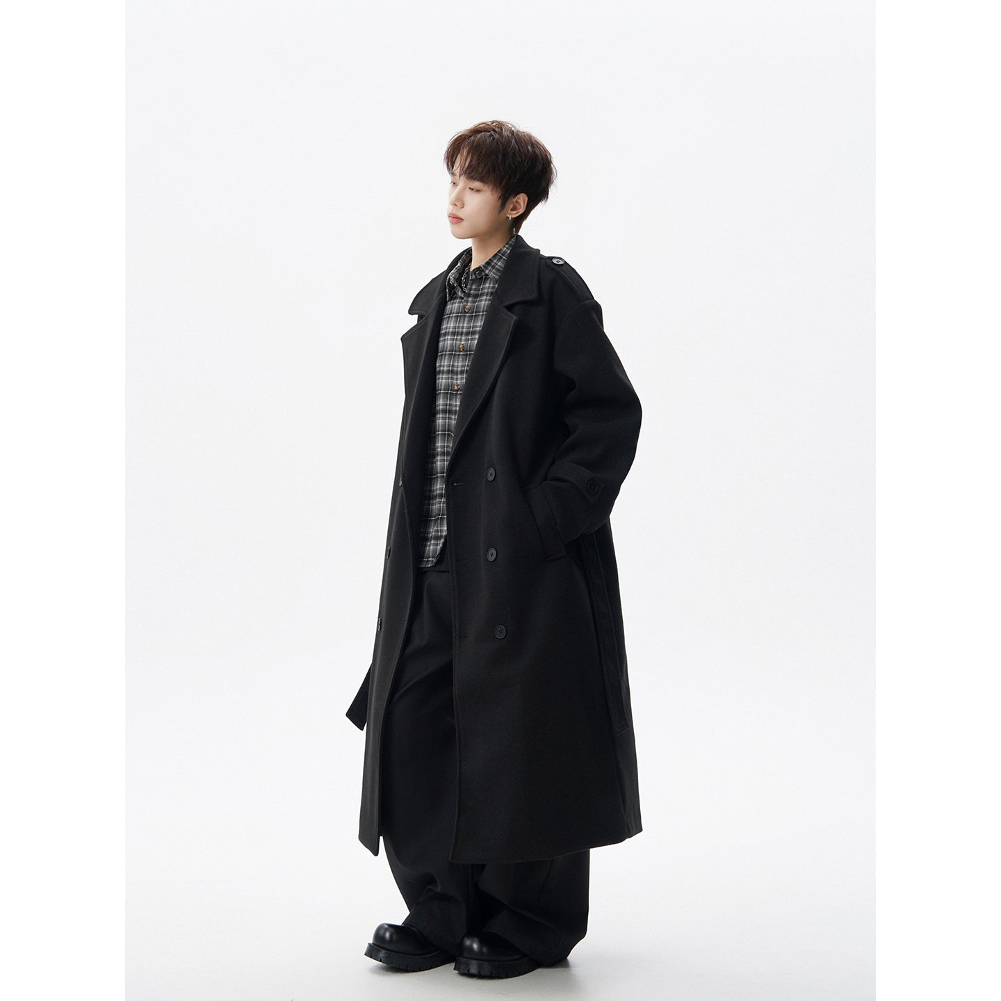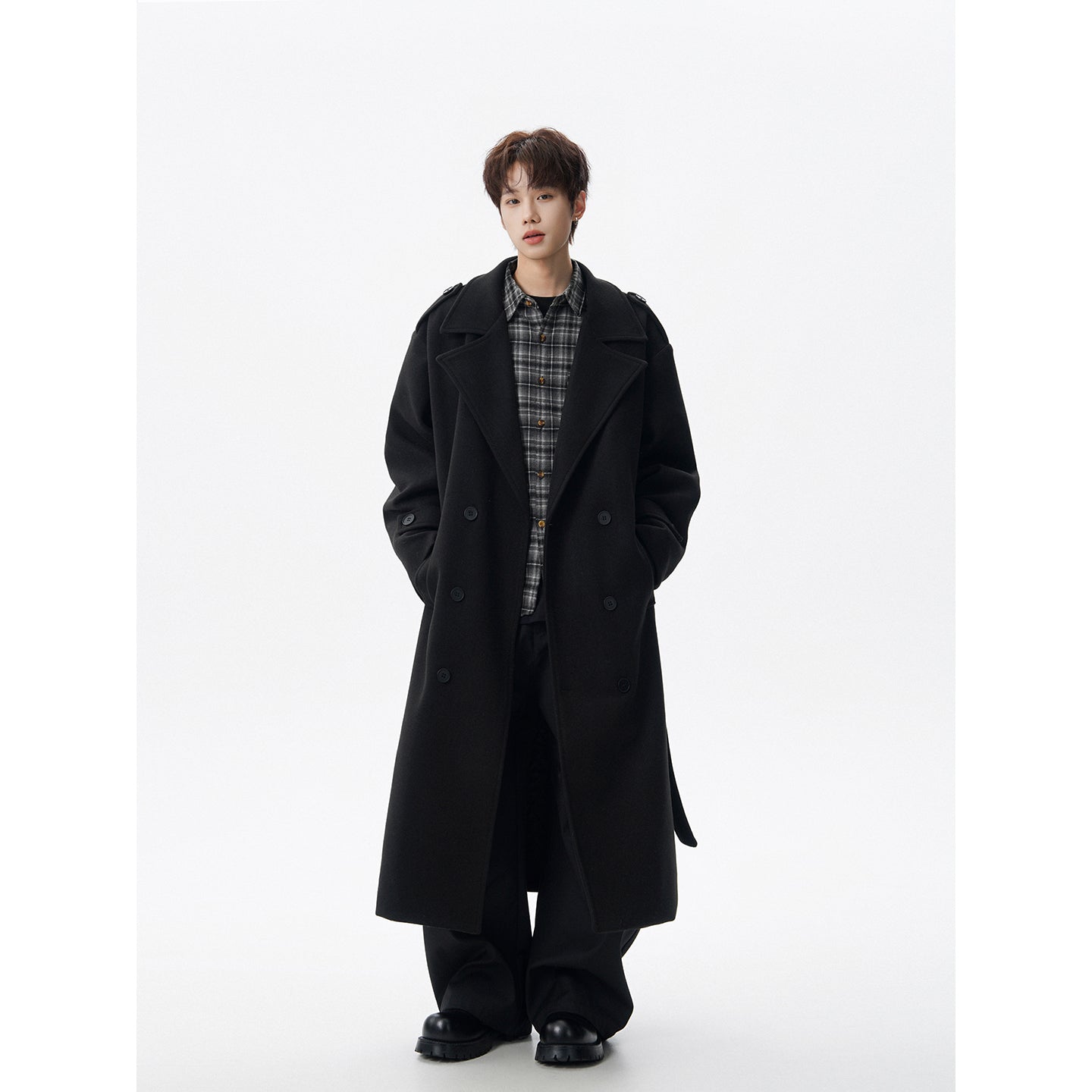 Мужское пальто PAEFA в корейском английском стиле с двубортной застежкой, длинными рукавами и свободным силуэтом. Модель выполнена из полиэстера с подкладкой из полиэстера, сочетает винтажный американский стиль и практичность для прохладной погоды.