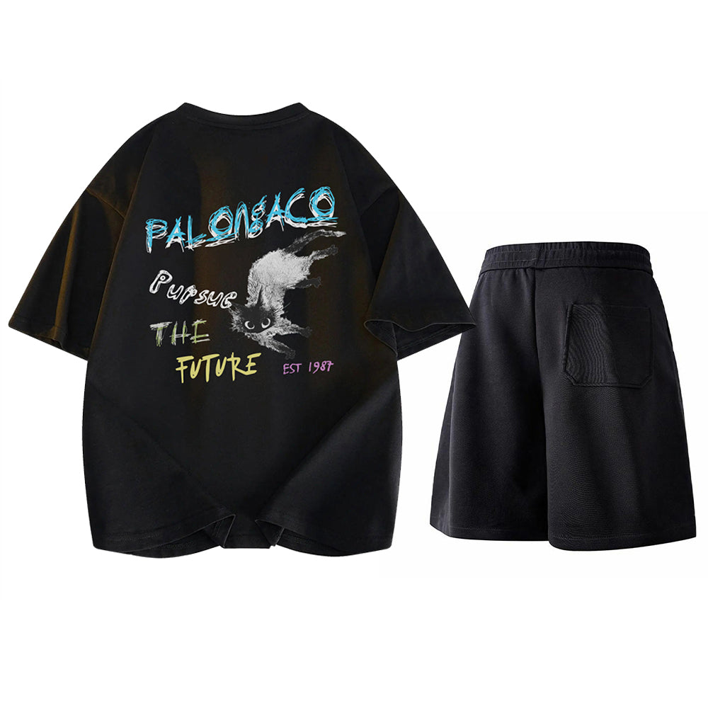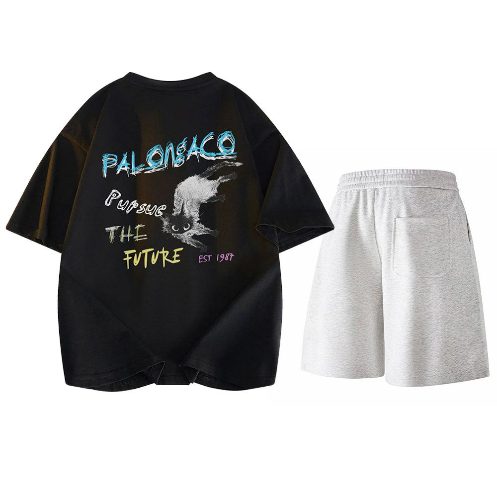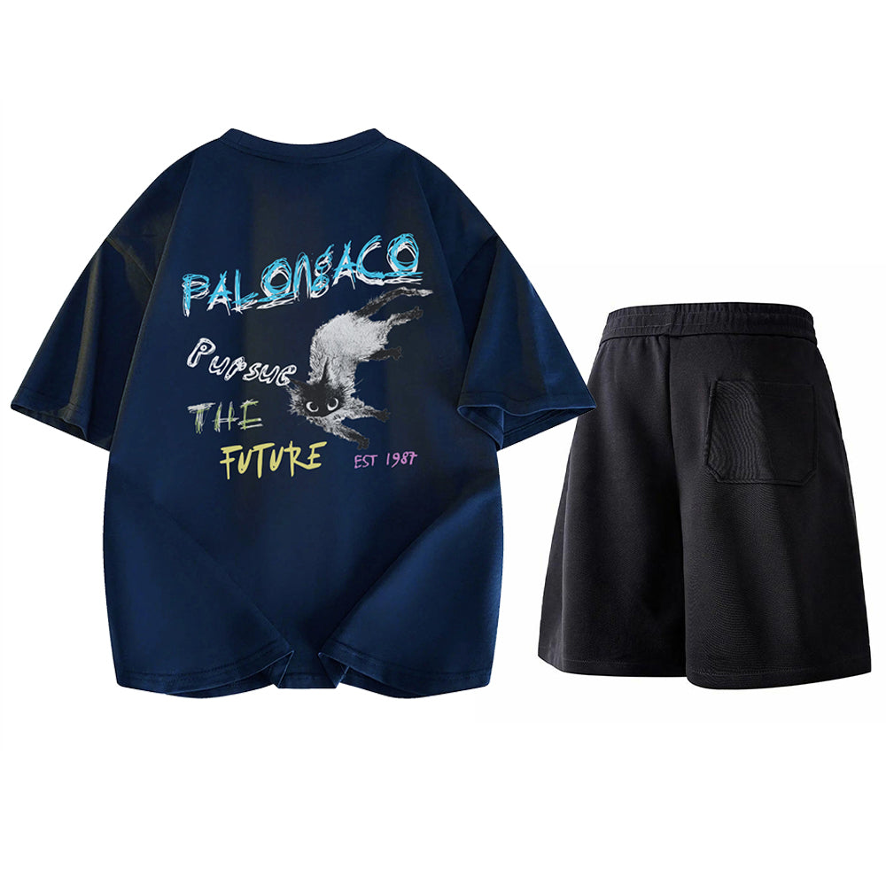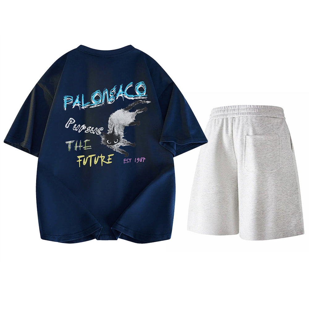 Yorqin grafik printli, qulay va zamonaviy kalta yengli to'plam, jumladan, elastik belga ega futbolka va qulay shortilar. Faol mashg'ulotlar va kundalik yozgi sayrlar uchun juda mos keladi.