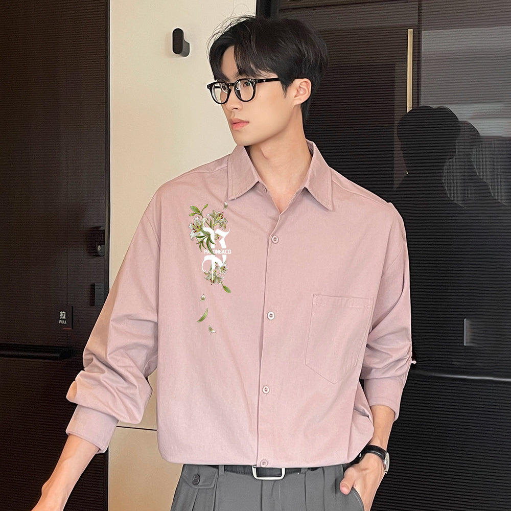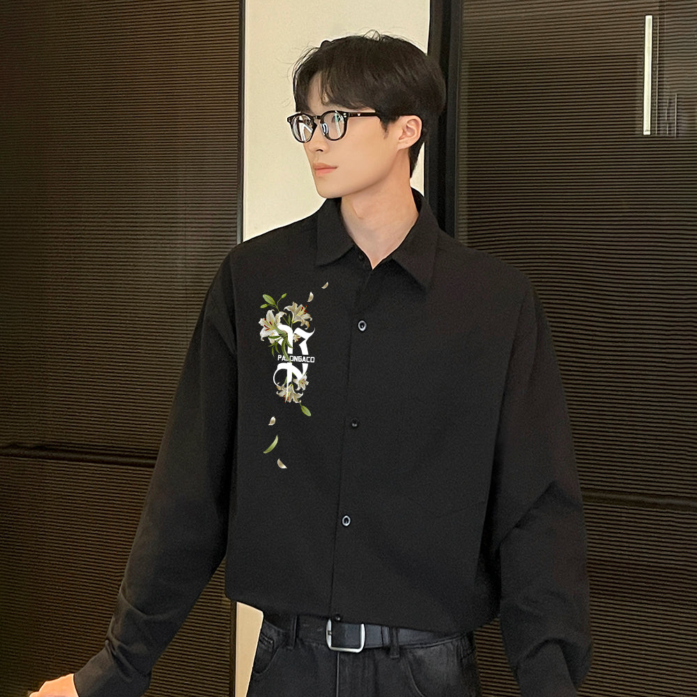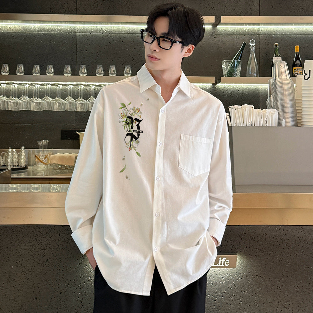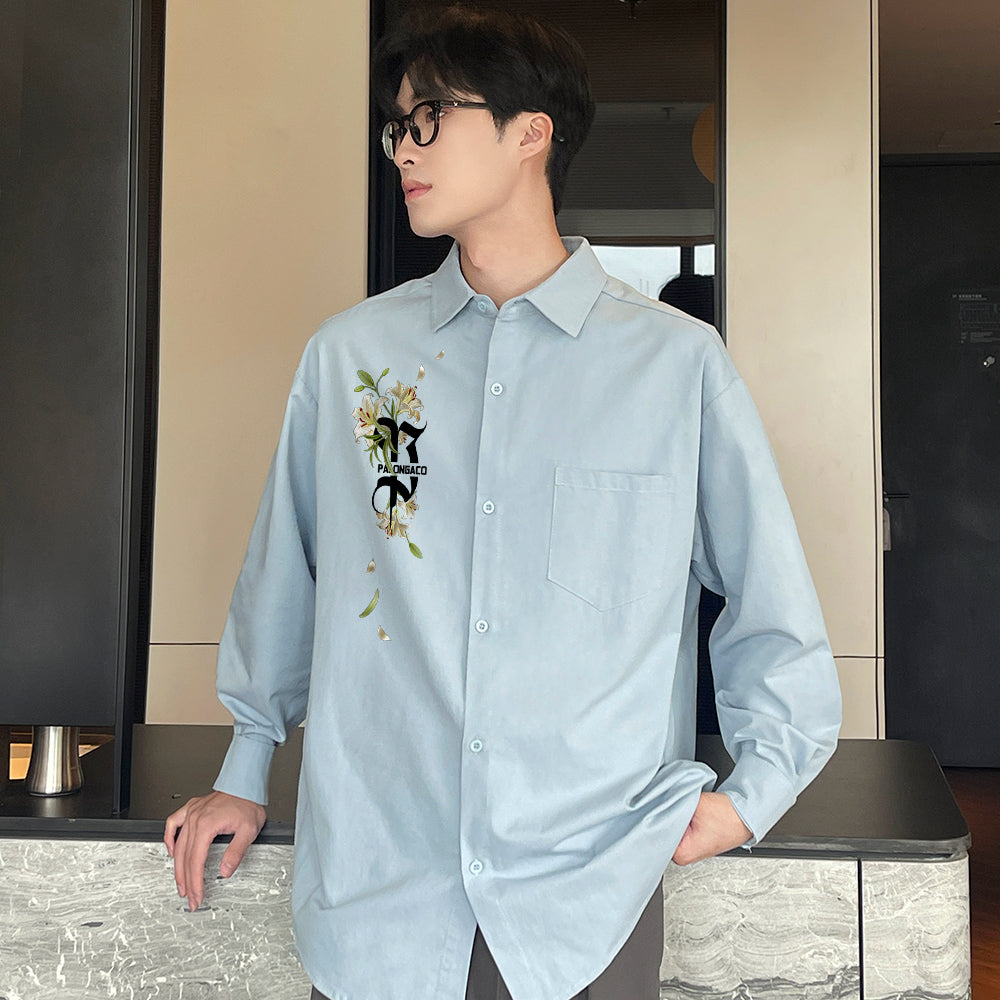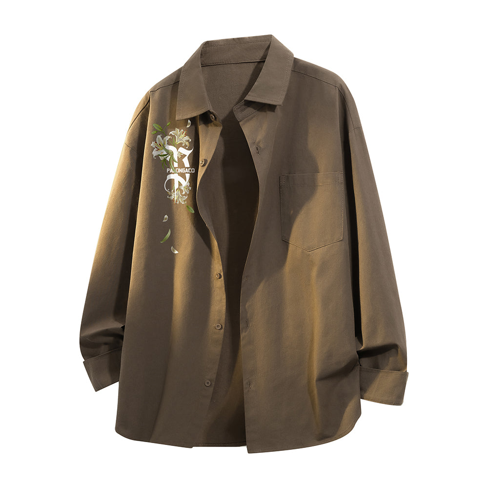 Pal ongaco pal ongaco Amerika retro jinssiz asosiy modellar harflar logotipi soxta kashtado'zlik o'simliklari gulli dizayn printlar oddiy lapel bo'shashmasdan qulay yelkalar paxta uzun yengli erkaklar va ayollar uchun ko'ylaklar