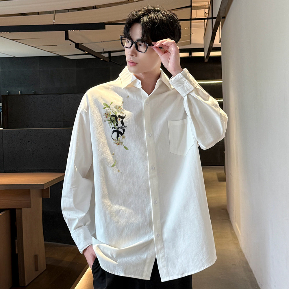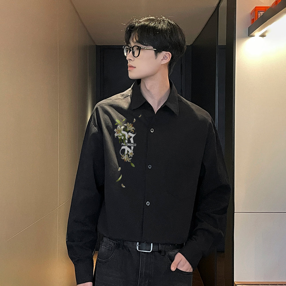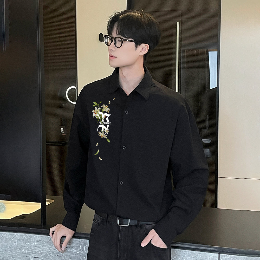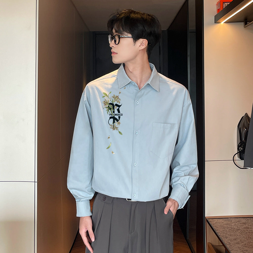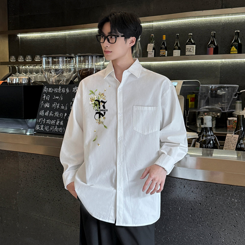Pal ongaco pal ongaco Amerika retro jinssiz asosiy modellar harflar logotipi soxta kashtado'zlik o'simliklari gulli dizayn printlar oddiy lapel bo'shashmasdan qulay yelkalar paxta uzun yengli erkaklar va ayollar uchun ko'ylaklar