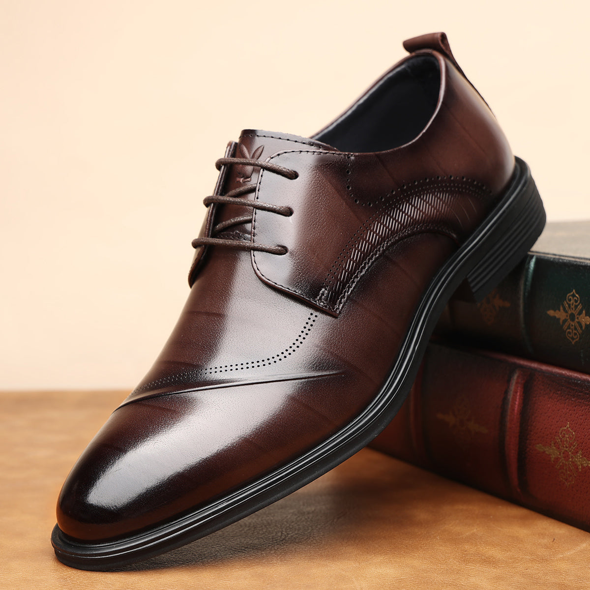 Koreyscha uslubdagi erkaklar uchun Playboy rasmiy poyabzali, asl sigir terisidan (yuqori qatlam) tayyorlangan. Ushbu nafis, yumaloq uchli, past uchli dizayn qulaylikni zamonaviy dizayn bilan uyg'unlashtirib, kiyuvchining mavqei va uslubini ta'kidlaydi. Bahor, yoz va kuz mavsumlari uchun mos keladi.