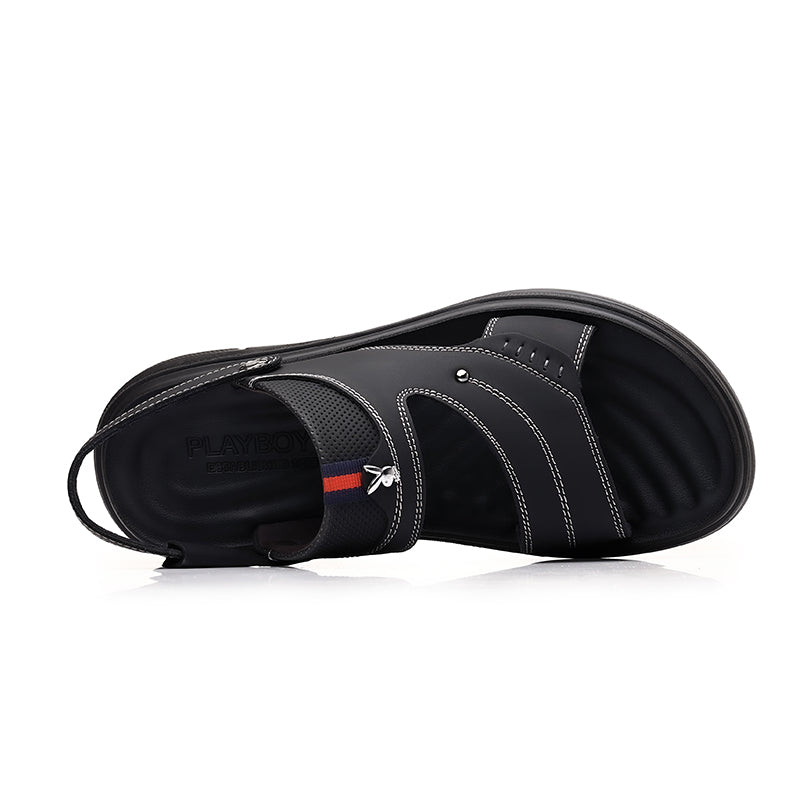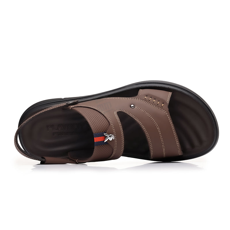 Erkaklar uchun haqiqiy sigir terisidan tikilgan Playboy plyaj sandallari (yuqori qatlam). Oddiy va qulay ochiq oyoqli dizayn, bir marta tortiladigan konstruksiyaga ega. Yengil poliuretan taglik kundalik kiyim uchun qulaylik va barqarorlikni ta'minlaydi. Ko'p qirrali dizayn yoz uchun juda mos keladi.