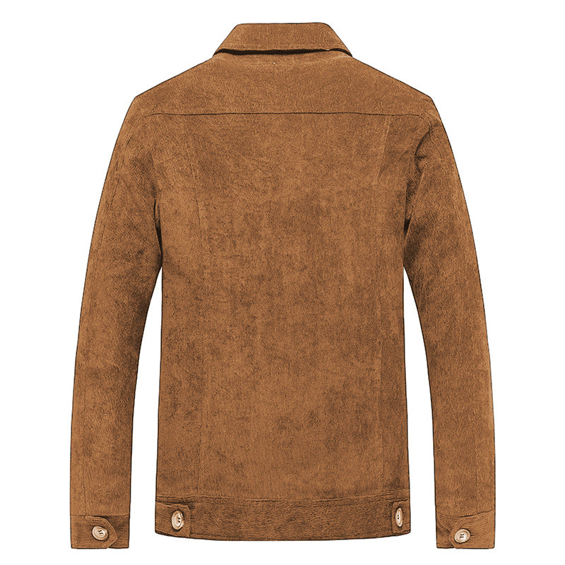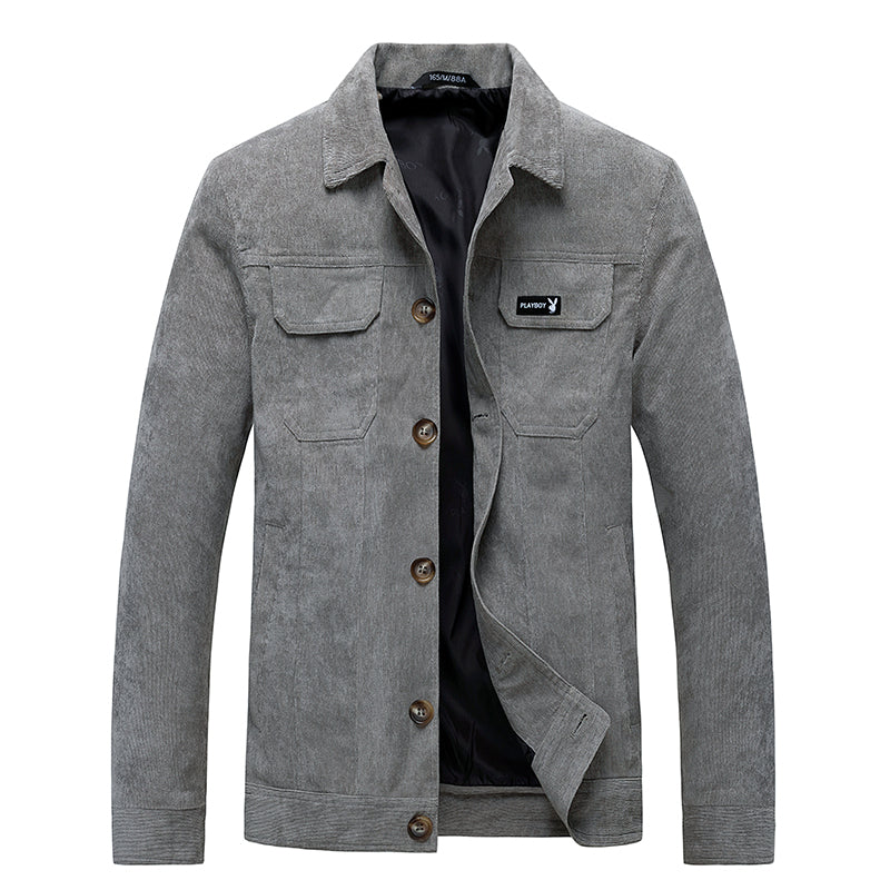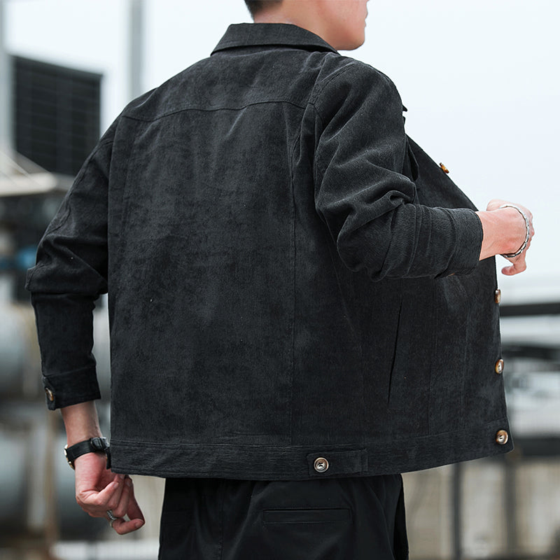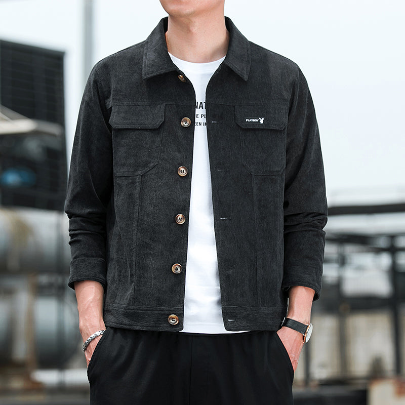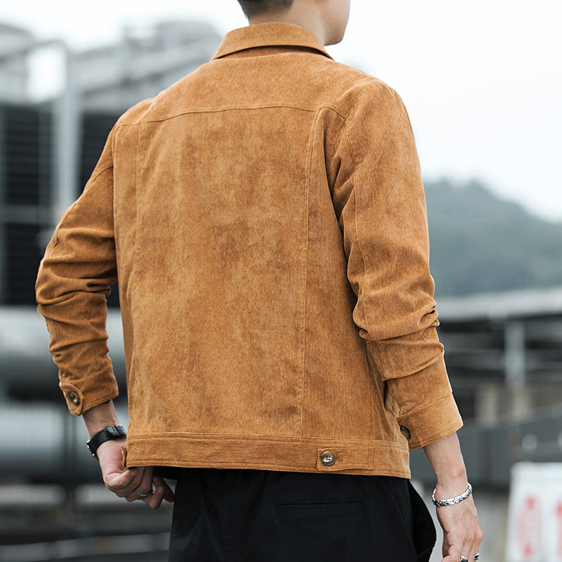 Bu erkaklar uchun ochiladigan yoqali kurtka yumshoq korduroy matodan tikilgan. Ushbu zamonaviy bitta tugmachali dizayn kuz va bahorda kundalik kiyish uchun juda mos keladi.