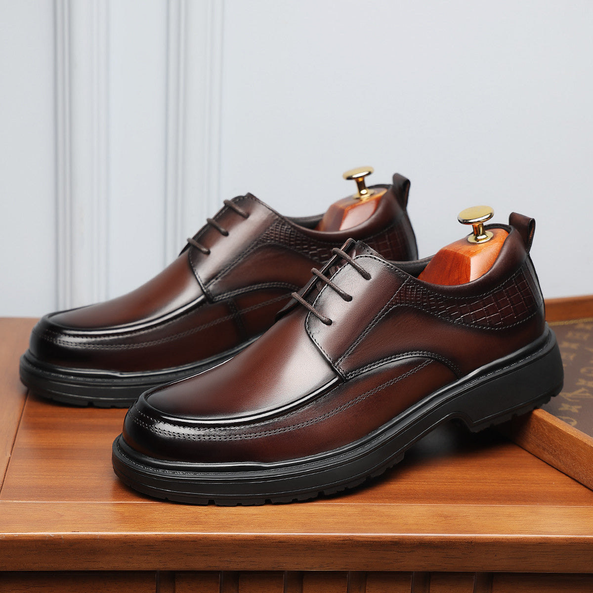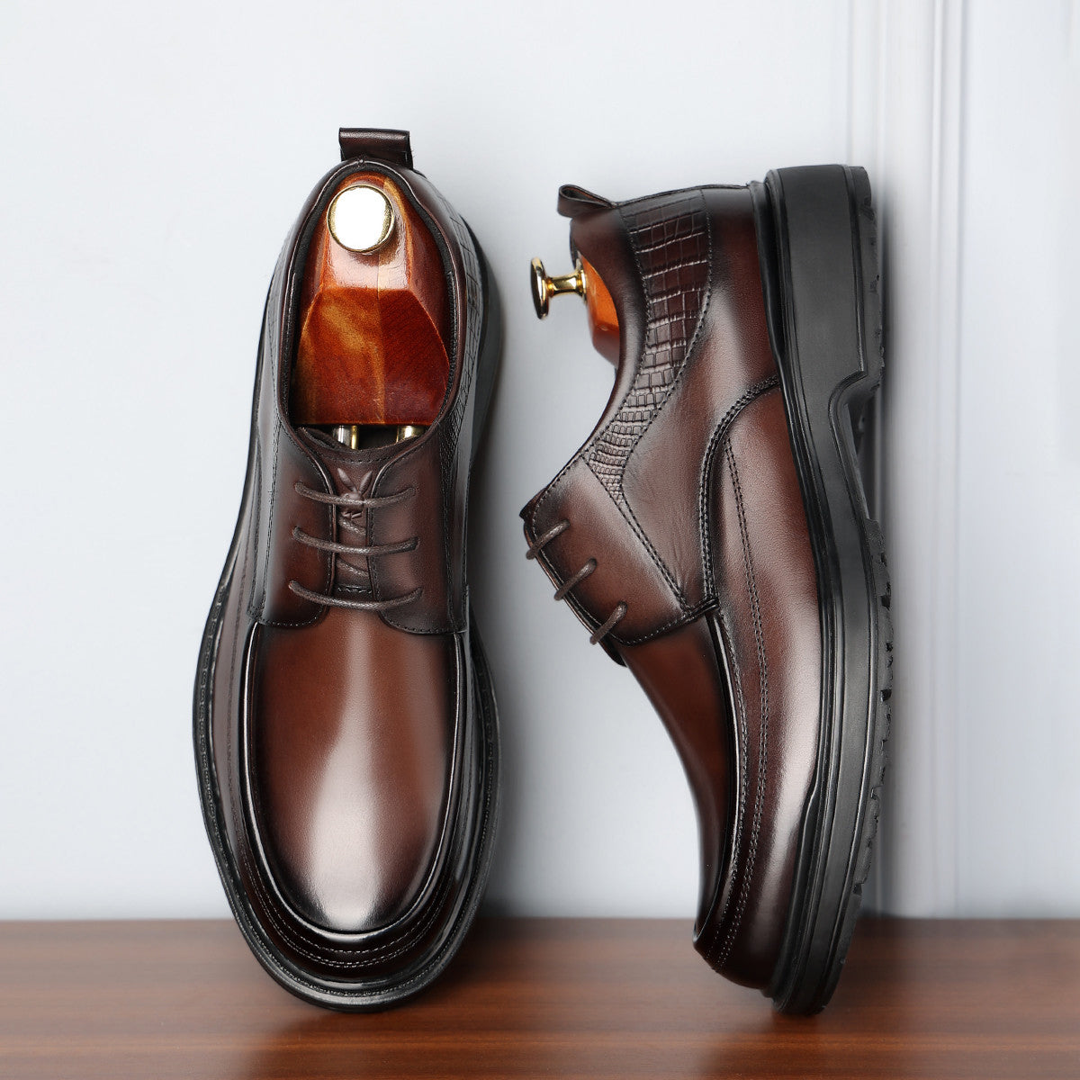 Туфли в британском стиле из кожи на массивной подошве для повседневной носки. Модель с округлым мысом обеспечивает комфорт, универсальность и современный образ.