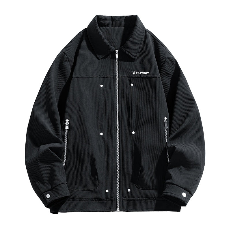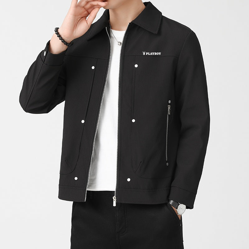 Playboy mikro teksturali metall dekorativ lapel erkaklar ko'ylagi