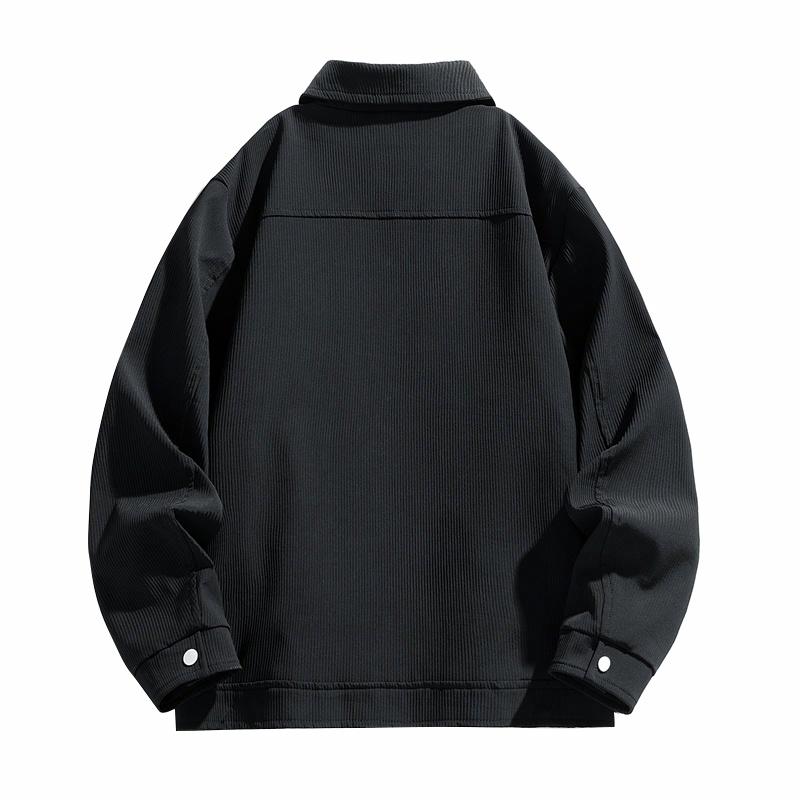 Куртка с отложным воротником и металлической фурнитурой из полиэстера с текстурной поверхностью. Модель свободного кроя обеспечивает защиту от ветра и подходит для делового и повседневного стиля.