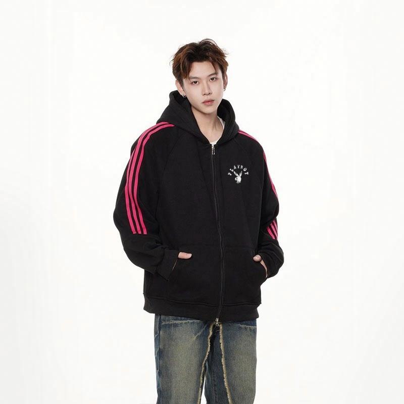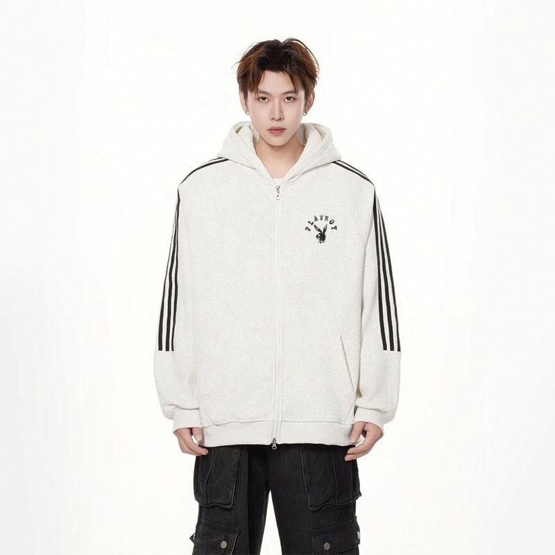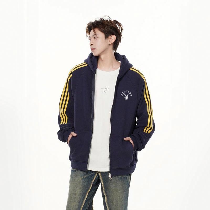 Playboy chiziqli kapshonli erkaklar sport kurtkasi