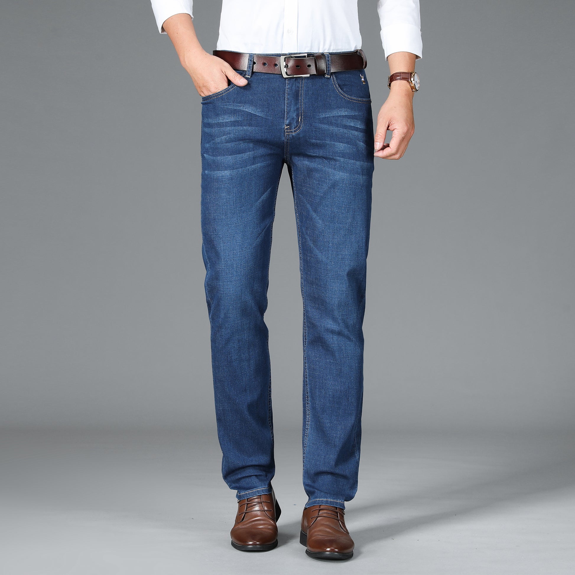 Erkaklar uchun Playboy jinsi shimlari shahar va ofis uchun ko'p qirrali asosiy narsadir. Qulay o'rnatish va oson parvarish qilish.