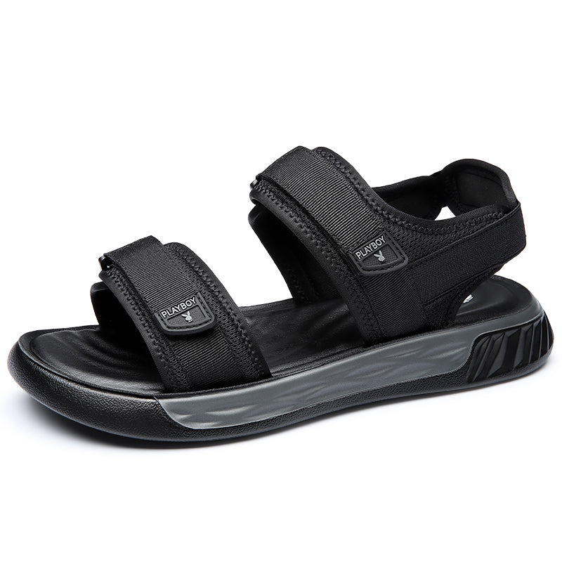 Erkaklar plyaj sandallari nafas oluvchi matodan yasalgan ustki qismi va yumshoq poliuretan tagligi bilan ajralib turadi. Ochiq uchli dizayn sozlanishi mumkin bo'lgan Velcro tasmalari va qulay dam olish uchun ko'cha uslubidagi T-tasmaga ega.