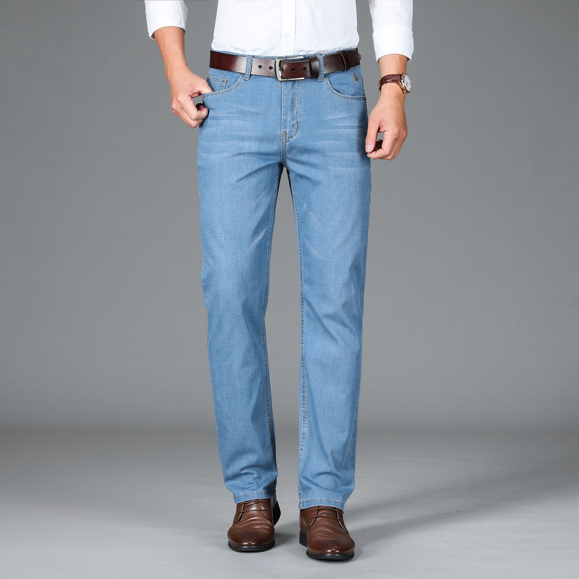 Erkaklar uchun Playboy jinsi shimlari shahar va ofis uchun ko'p qirrali asosiy narsadir. Qulay o'rnatish va oson parvarish qilish.