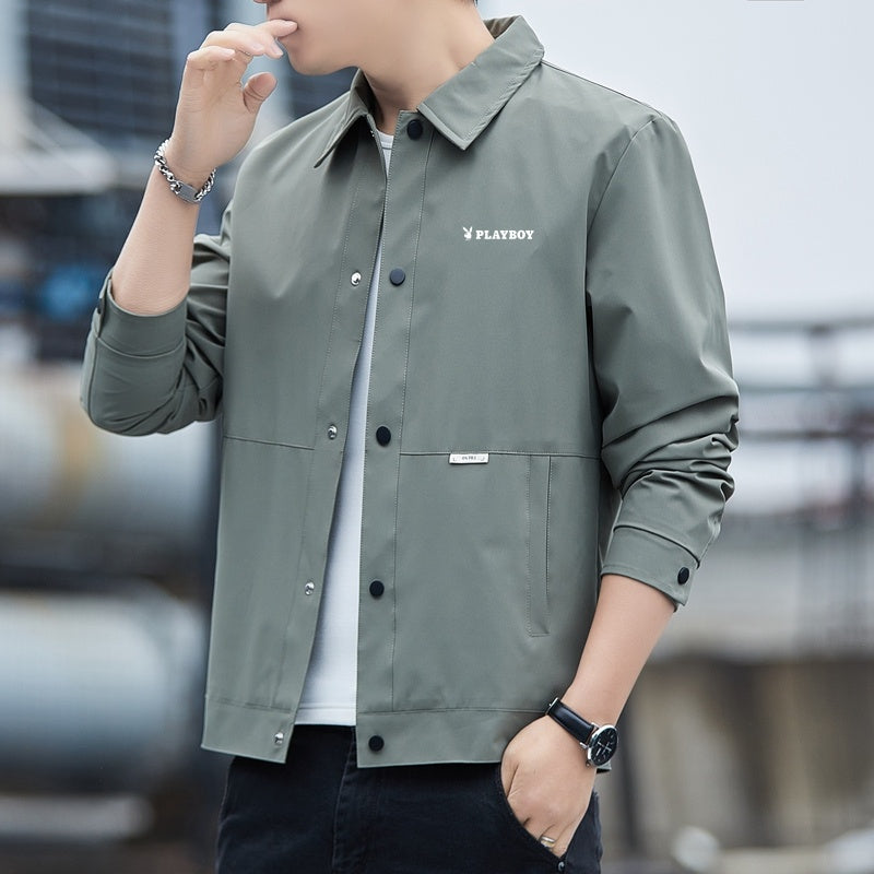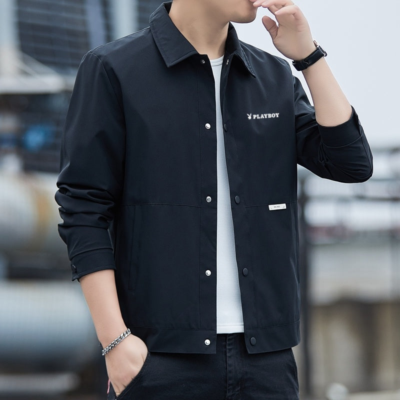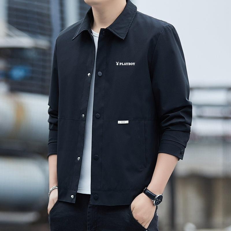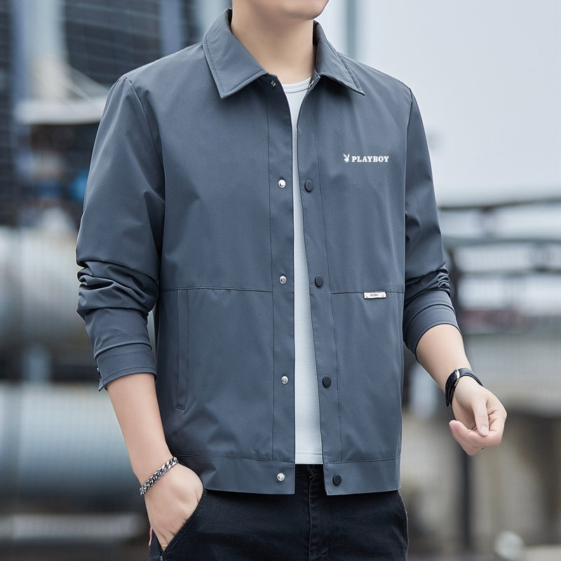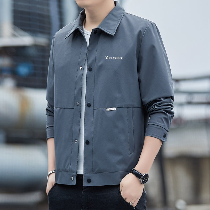 Ushbu erkaklar uchun yoqali poliester kurtka bahor va kuz uchun juda mos keladi. U brend logotipi tushirilgan zamonaviy va qulay dizaynga ega.