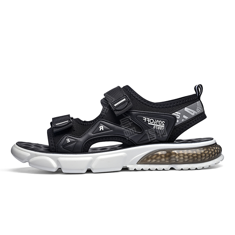 Erkaklar uchun zarbani yutuvchi va nafas oluvchi plastik konstruksiyaga ega hamda sozlanishi lipuckle tasmalarga ega sandallar. Qulay va zamonaviy kiyinish uchun ochiq oyoq barmoqli ochiq havoda kiyish uslubi.